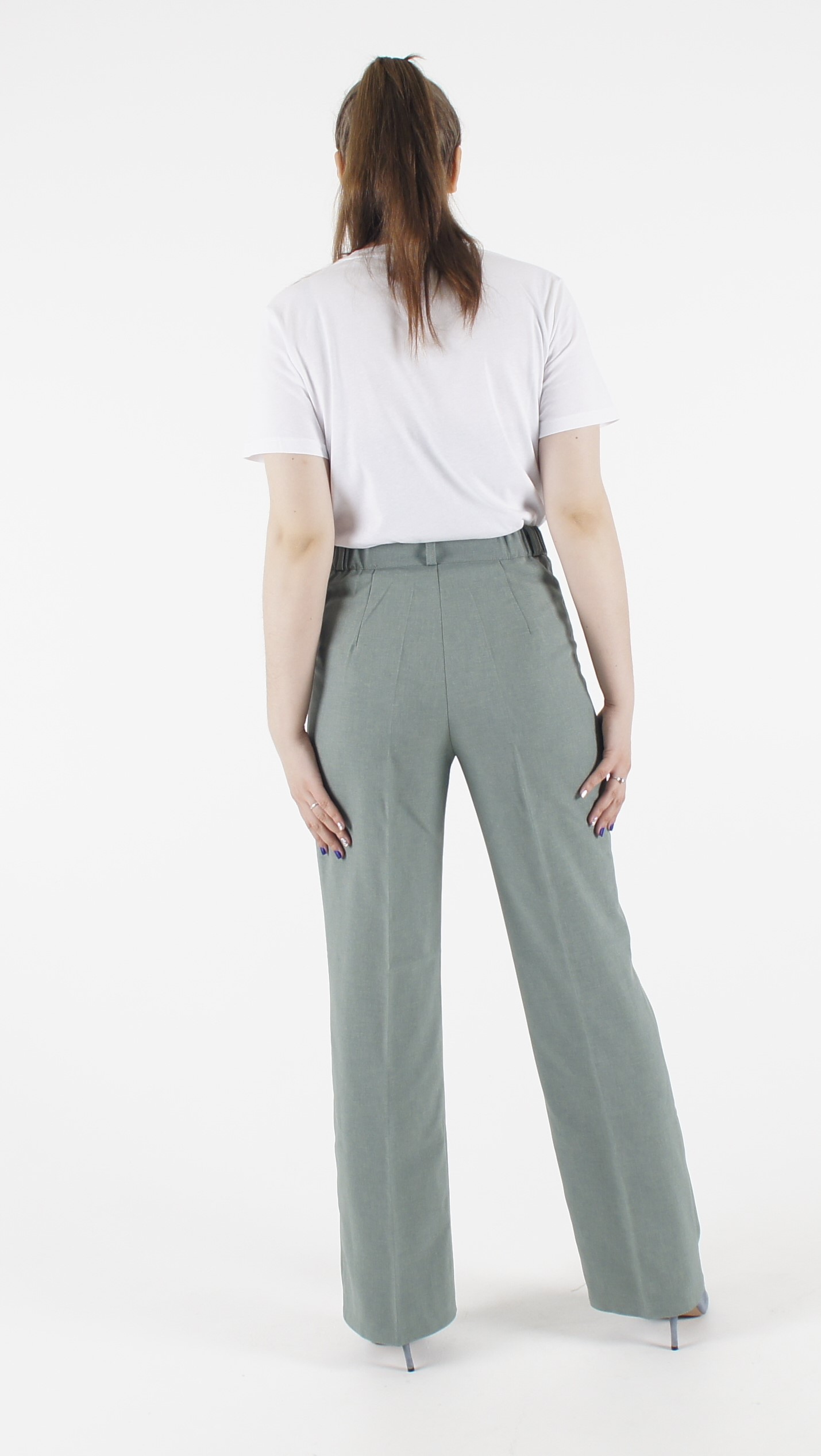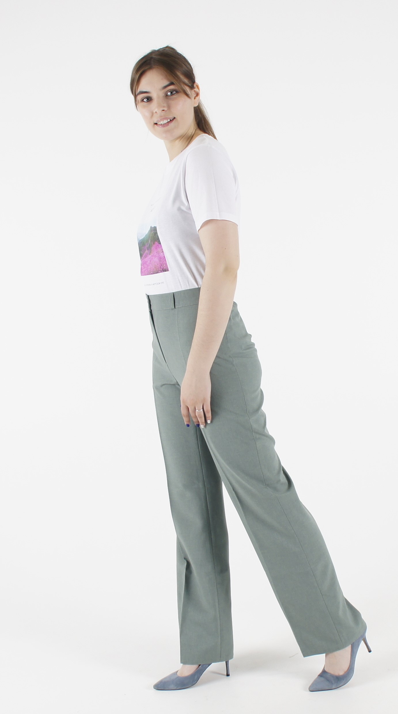 Женские летние брюки Трубы пояс резинка меланж олива