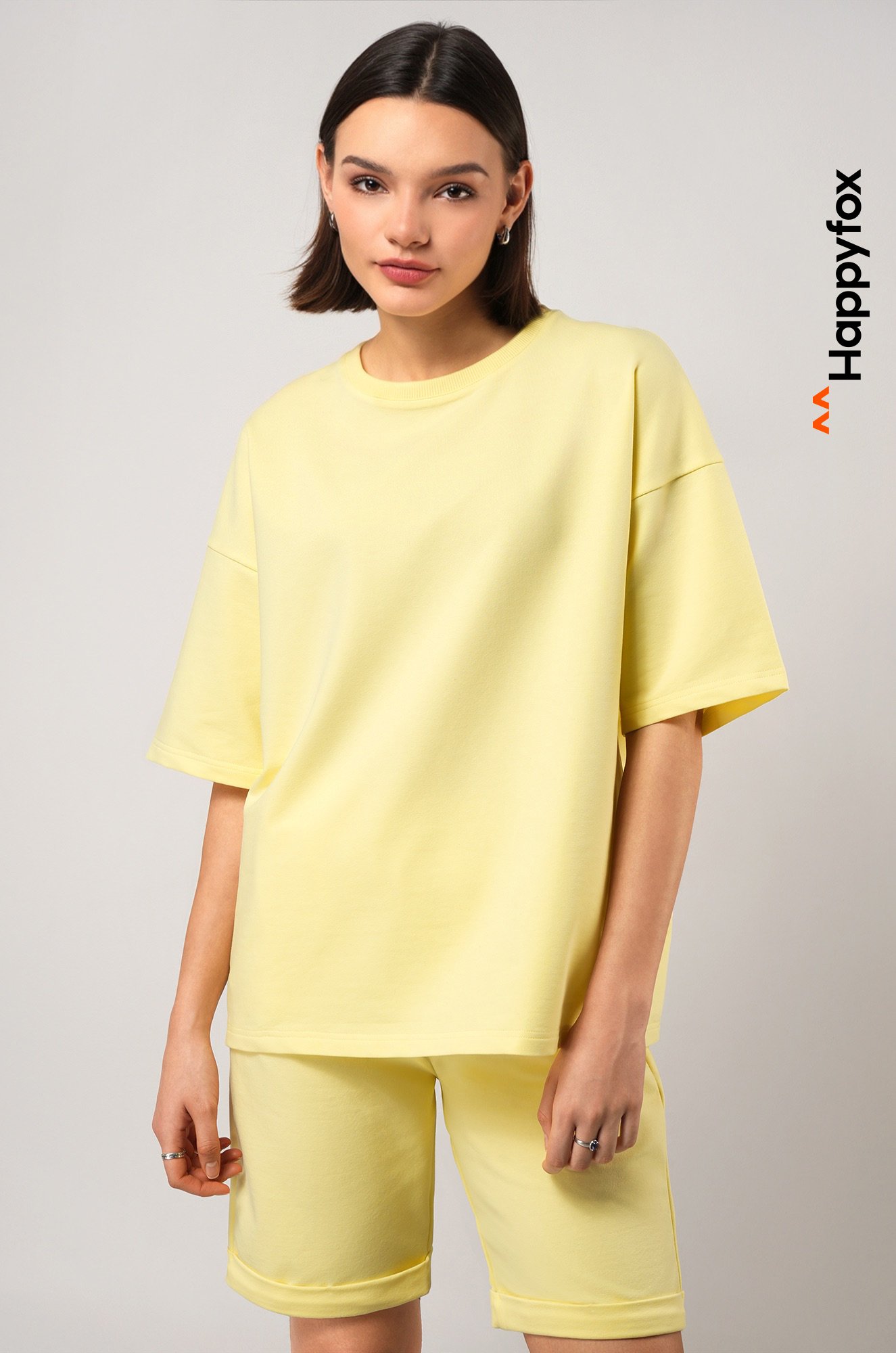 Женский костюм в светло-желтом цвете — сама нежность и комфорт! Однотонный спортивный костюм оверсайз с удлиненной футболкой и практичными шортами дарит полную свободу движений. Летний комплект двойка выполнен из мягкого трикотажного футера с высоким содержанием хлопка.