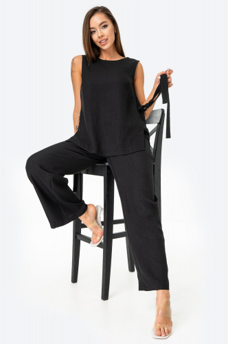 Женский летний костюм двойка — лёгкий и стильный комплект для комфортных образов в жаркий сезон. Брючный костюм для женщин выполнен из воздушной ткани с вискозой в составе, благодаря чему материал приятен к телу и хорошо пропускает воздух.