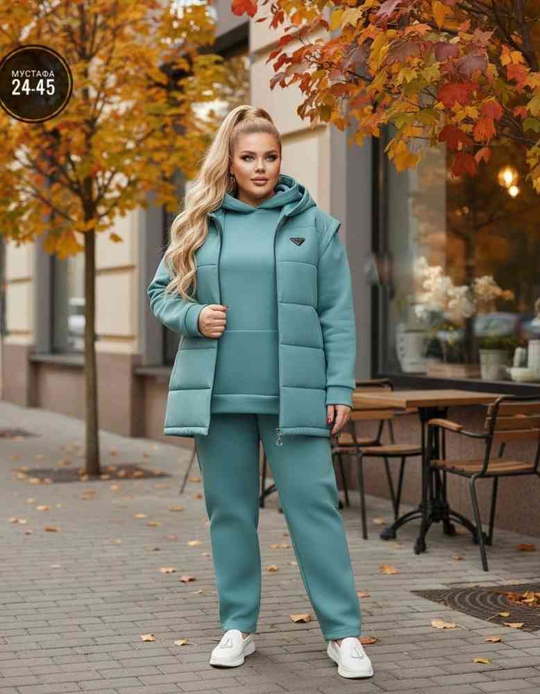 ЖЕНСКИЙ КОСТЮМ ТРОЙКА В РАЗМЕР ТКАНЬ ФЛИС С НАСОСАМ