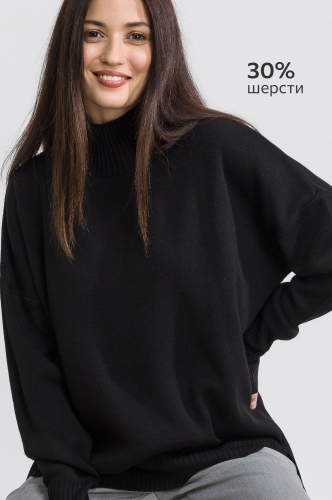 Свободный крой со спущенной линией плеча создаёт просторный силуэт, в котором можно двигаться, как хочется! Свитер оверсайз (oversize) – только легкость и максимальное удобство. Ворот хомут защитит от прохладного ветра.