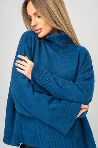 Женский синий свитер оверсайз станет незаменимой частью зимнего гардероба. Широкие рукава и высокий ворот делают джемпер идеальным выбором для создания стильных и комфортных образов.