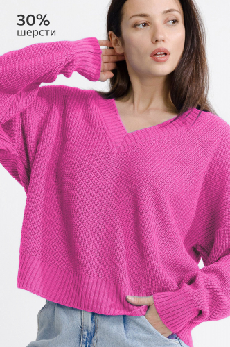 Короткий джемпер oversize выполнен из высококачественного вязаного трикотажа, в состав которого входит акрил, шерсть и хлопок. Эта комбинация дарит тепло и приятные тактильные ощущения. Шерстяные волокна делают свитер мягким и уютным, акрил поможет сохранить форму.