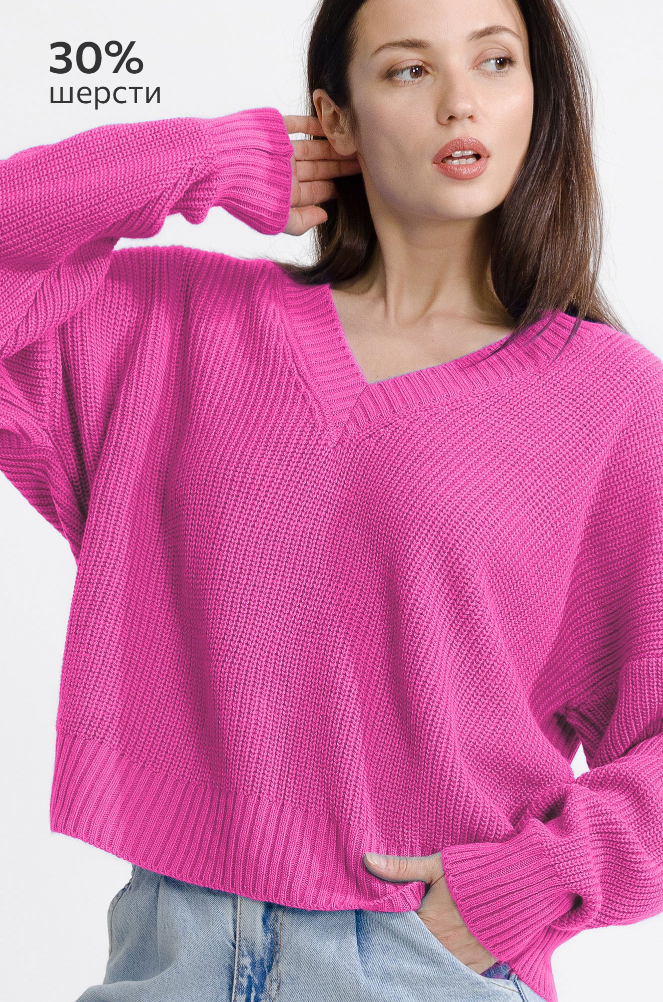 Женский джемпер — это воплощение уюта, стиля и элегантности. Ярко-розовый свитер выполнен из мягкого вязаного трикотажа и станет прекрасным выбором для осени и зимы.