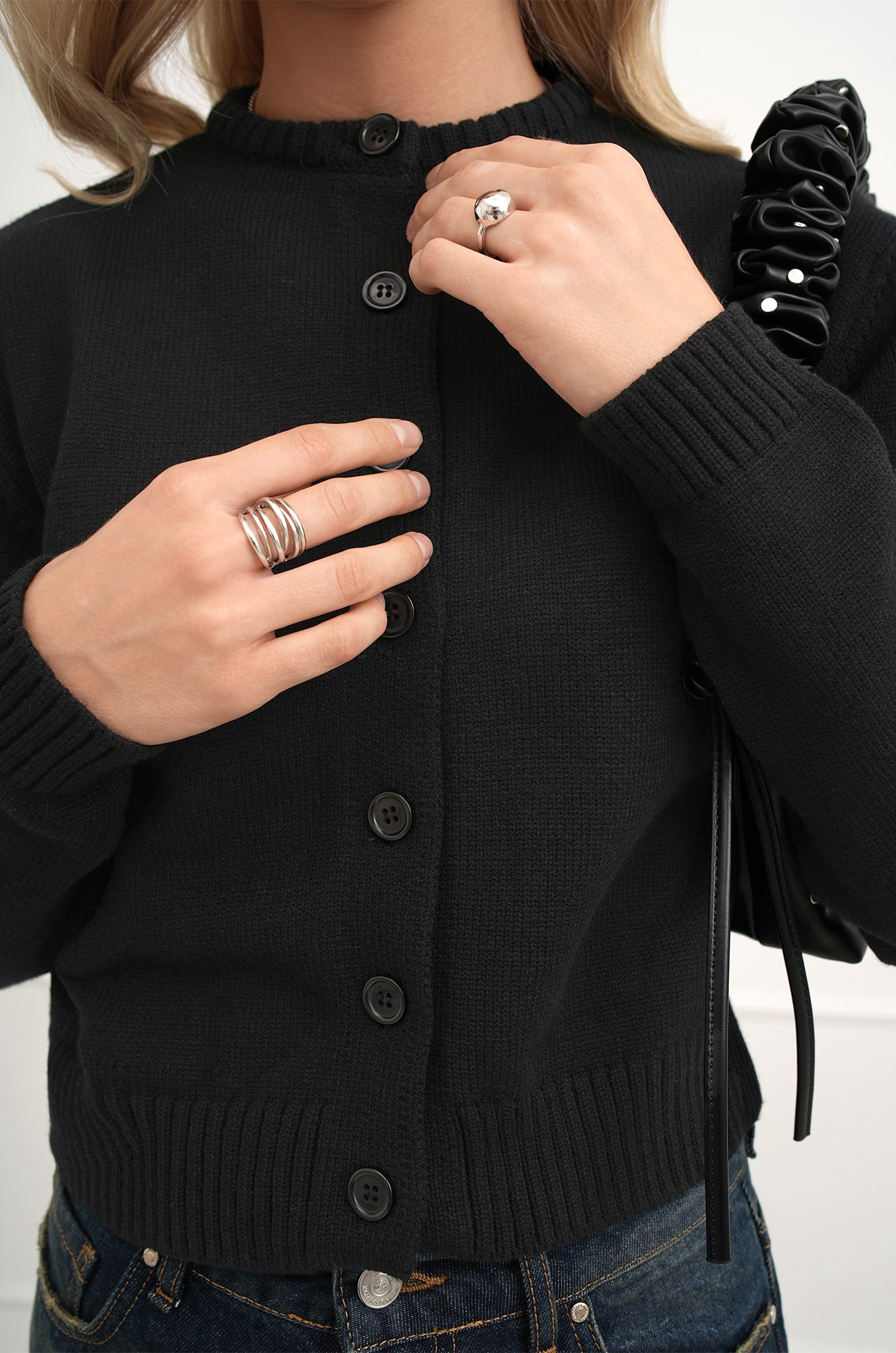 — однотонный черный кардиган легко вписывается в офисный, романтичный и смарт кэжуал стили.