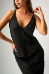 Женский костюм из мягкого вязаного трикотажа в рубчик — воплощение элегантности и уюта для прохладных дней. Джемпер прямого кроя с длинным рукавом и спущенным плечом дарит полную свободу движений, а круглая горловина добавляет образу классической сдержанности. Длинная юбка макси на мягкой резинке подчеркивает женственность и грациозность, создавая гармоничный силуэт.