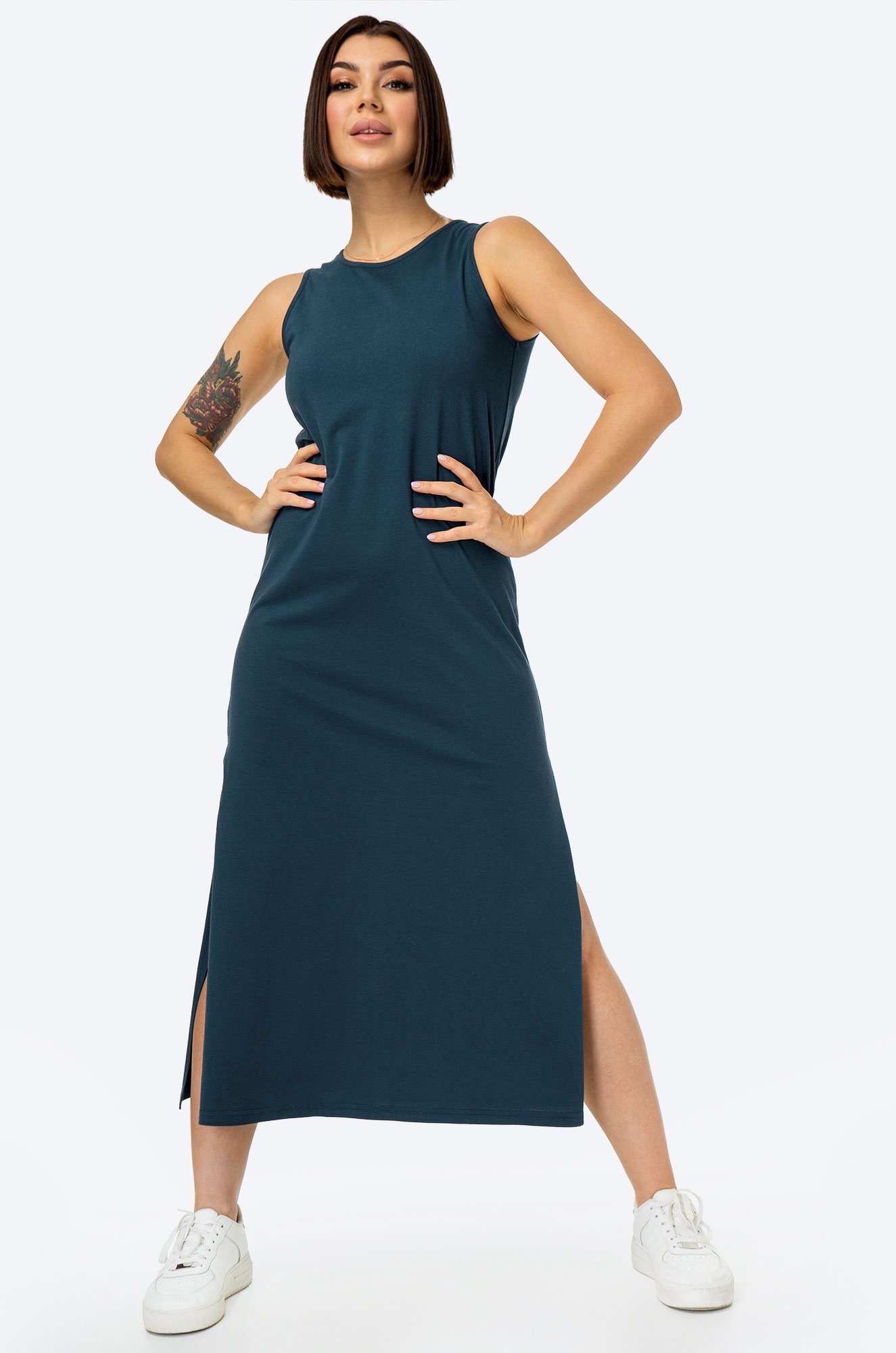 Длинное платье-майка в оттенке петроль — уют, который всегда с тобой! Этот базовый вариант создан для женщин, которые любят домашний комфорт и лёгкость движений. Однотонное платье подчеркнёт расслабленное настроение и станет любимым спутником для вечеров дома.