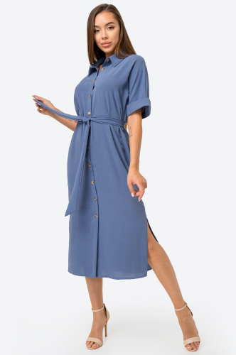 Женское платье-рубашка выполнено из фактурной ткани жатка и создано для знойных летних дней.