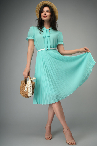 Однотонное воздушное платье ментолового цвета идеально подойдет женщинам, которые хотят выглядеть элегантно и чувствовать себя комфортно в повседневной жизни и на особенных мероприятиях. Подходит для летних прогулок, вечеринок или романтических обедов, придавая вашему образу легкость и грацию.