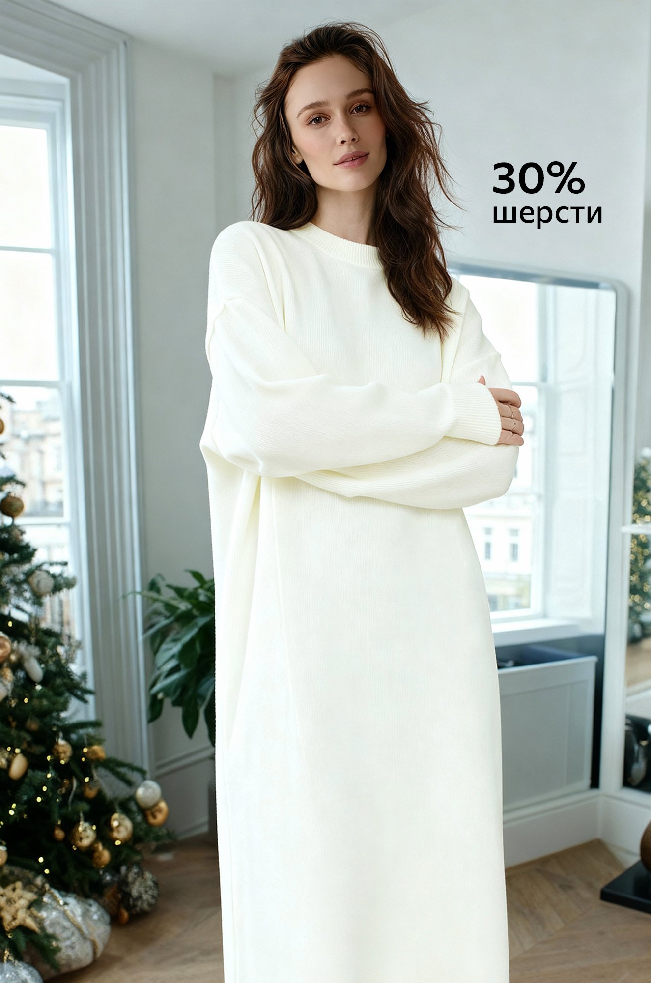 Вязаное платье кремового цвета идеально подходит для прохладных дней, добавляя в ваш гардероб тепло и изысканность!