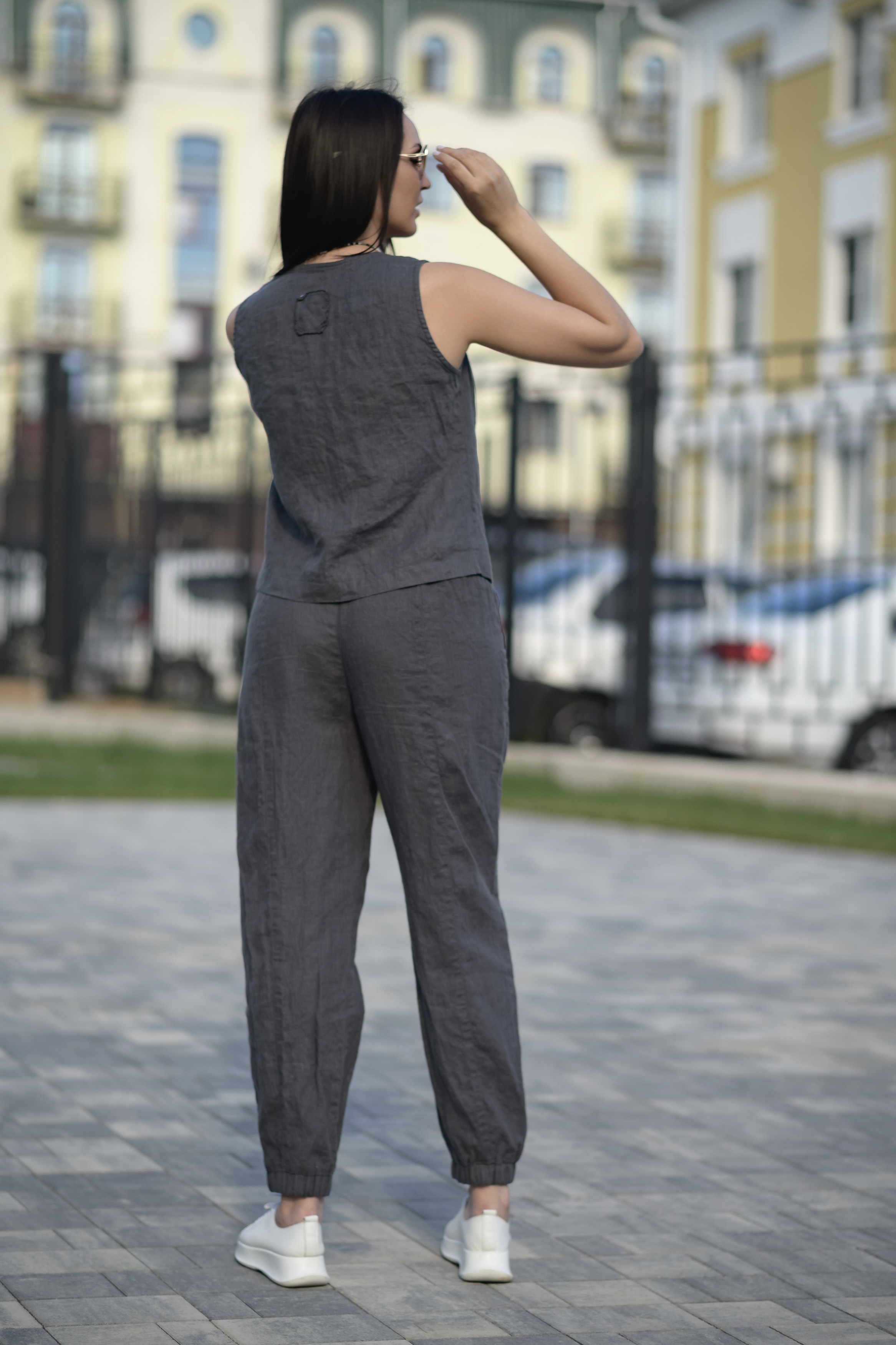 Льняной классический жилет. Силуэт полуприлегающий. Изделие предусмотрено как для носки на тело, для этого предусмотрены соответствующие глубина проймы и вырез горловины, так и в комплекте с топами, футболками, блузами.