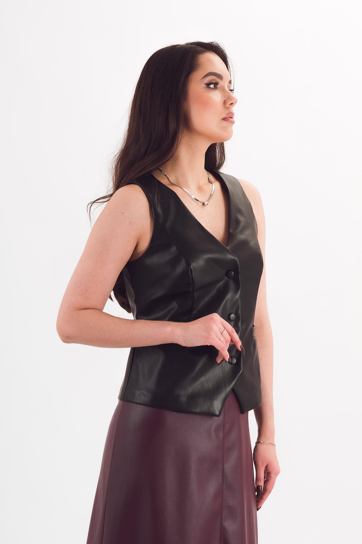 Описание: Классический жилет с V-образным вырезом и рельефами рисует женственный силуэт и зрительно стройнит. Удобные карманы с листочками завершают элегантный и лаконичный дизайн