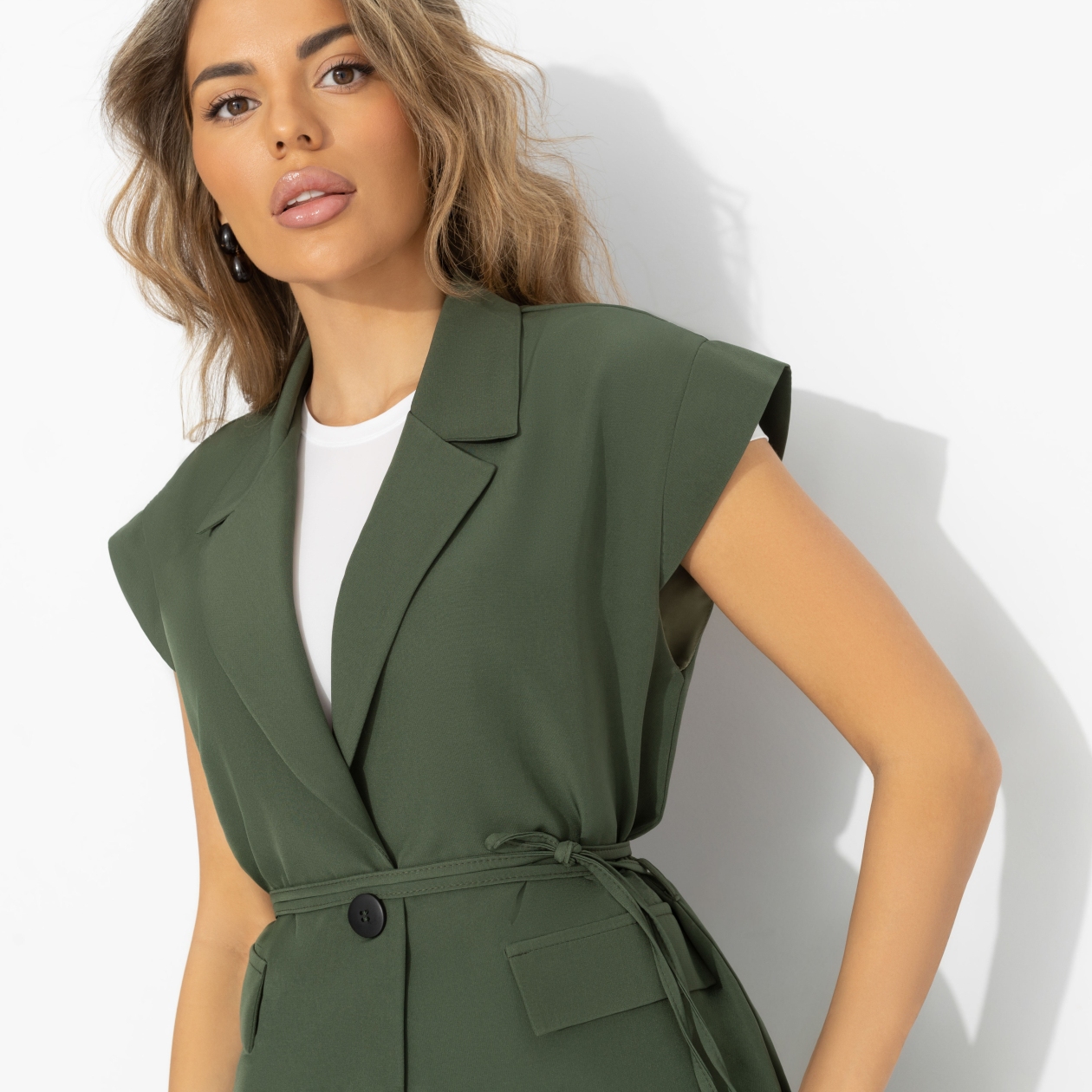 Бывает ли у одежды магия? Отвечаем: «да», и она зелёного цвета. Оттенок жилета чарует, линия плеч собирает восторги, а пояс подчёркивает талию. Надела – и эффект «слишком модно» включился сам. Жилет выполнен из пластичной ткани, красиво держит форму и мягко повторяет движения. Свободный крой балансируется поясом – можно носить приталенно или расслабленно. Идеален в комплекте с брюками, джинсами или поверх платья. Ткань приятна к телу и комфортна в течение дня.