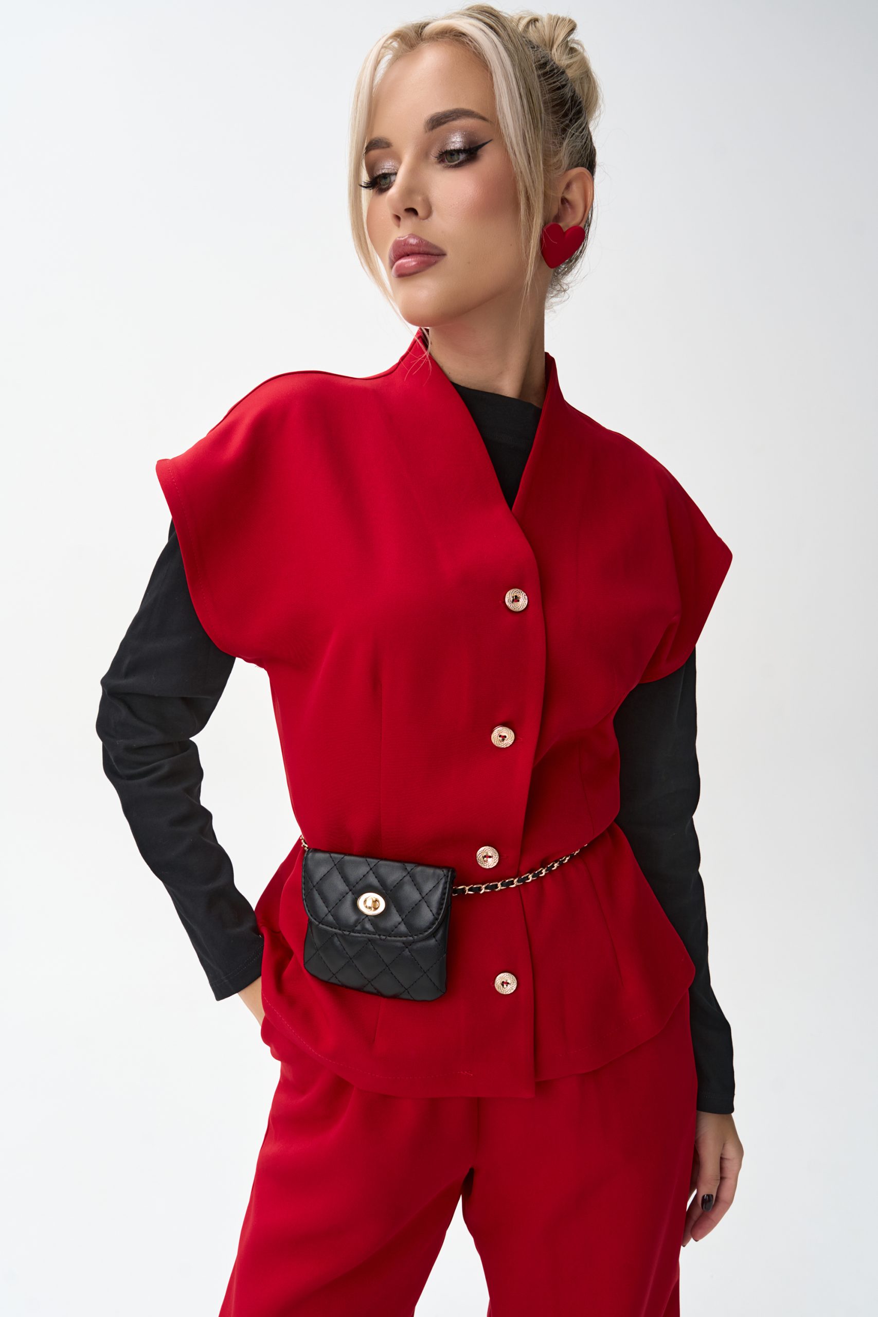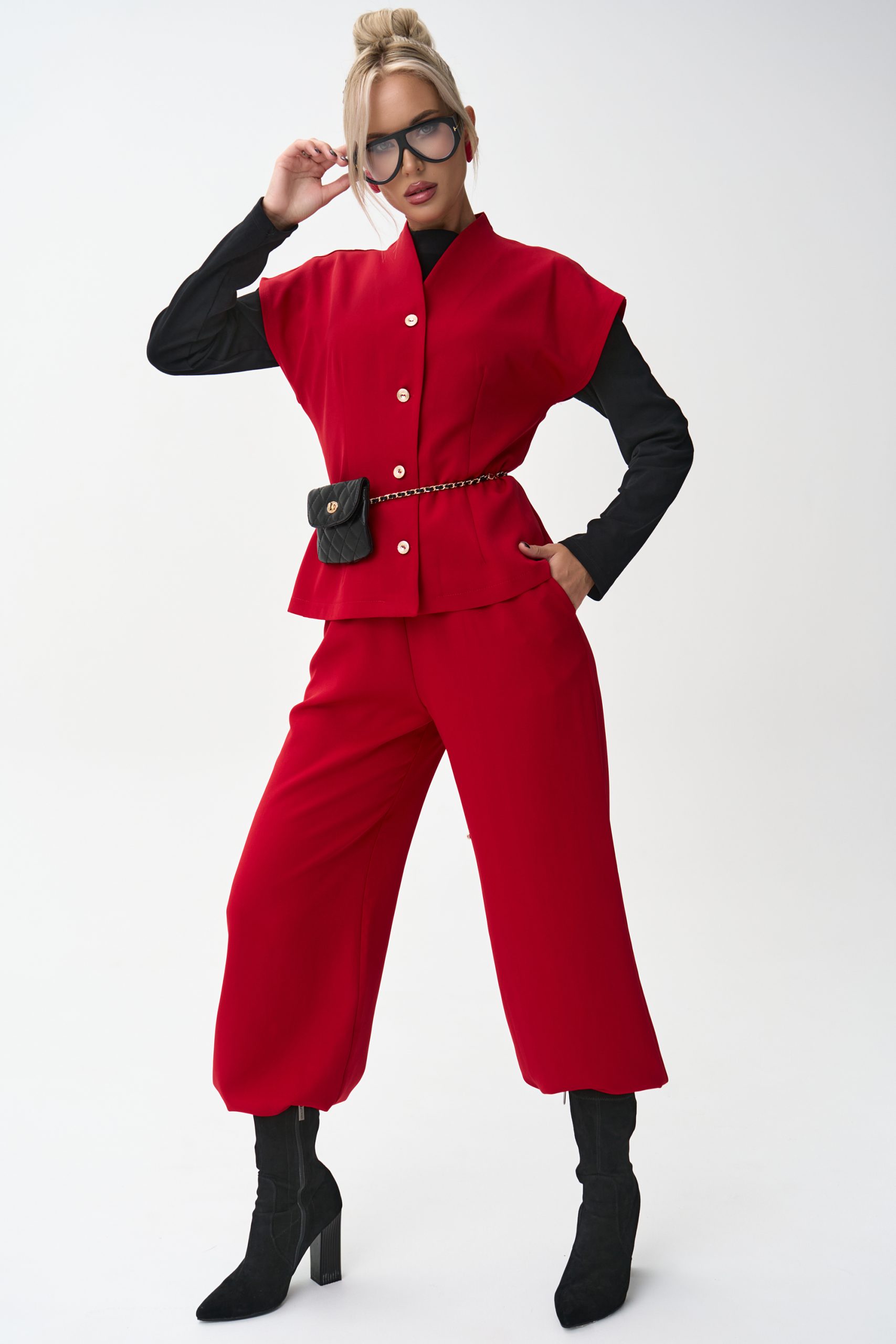 Дорогие девушки, позвольте представить вам настоящий must-have сезона – наш элегантный костюм который станет неотъемлемой частью вашего гардероба. Почему именно этот костюм? Давайте разберёмся. Во-первых, он выполнен из приятной костюмной ткани, что сразу придает ему роскошный вид. Вас точно заметят. Элегантный комплект состоящий из жилета и широких брюк –  идеальный вариант для разных событий и мероприятий. Но самое главное – это его способность легко интегрироваться в любые сочетания с любыми вещами из гардероба.  Настоящий ключ к вашему модному и современному образу. Попробуйте его сами и ощутите, как легко и изящно можно выглядеть в любой ситуации. (Брюки на резинке).