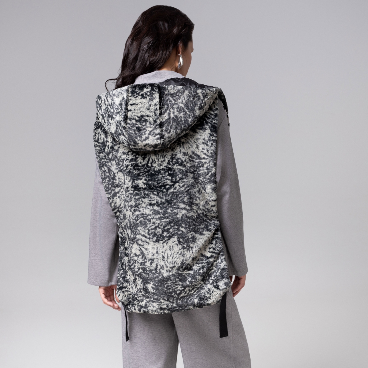 Жилет из экомеха шиншиллы сочетает в себе экстравагантный крой и уютную теплоту, создавая эффектный образ современной элегантности. Модель с объемным капюшоном подчеркивает мягкость линий и добавляет образу динамичный, стильный акцент. Безупречный пошив проявляется в идеальной посадке и тщательной обработке швов, обеспечивающих долговечность носки. Этот жилет, выполненный из премиального текстурного материала, становится акцентным элементом гардероба, который подчеркивает индивидуальность и чувство стиля своей обладательницы. Жилет на стёганом подкладе с капюшоном. Застежка на молнию. Можно носить как верхний, и как нижний слой под верхнюю одежду. Ширина изделия регулируется по бокам.