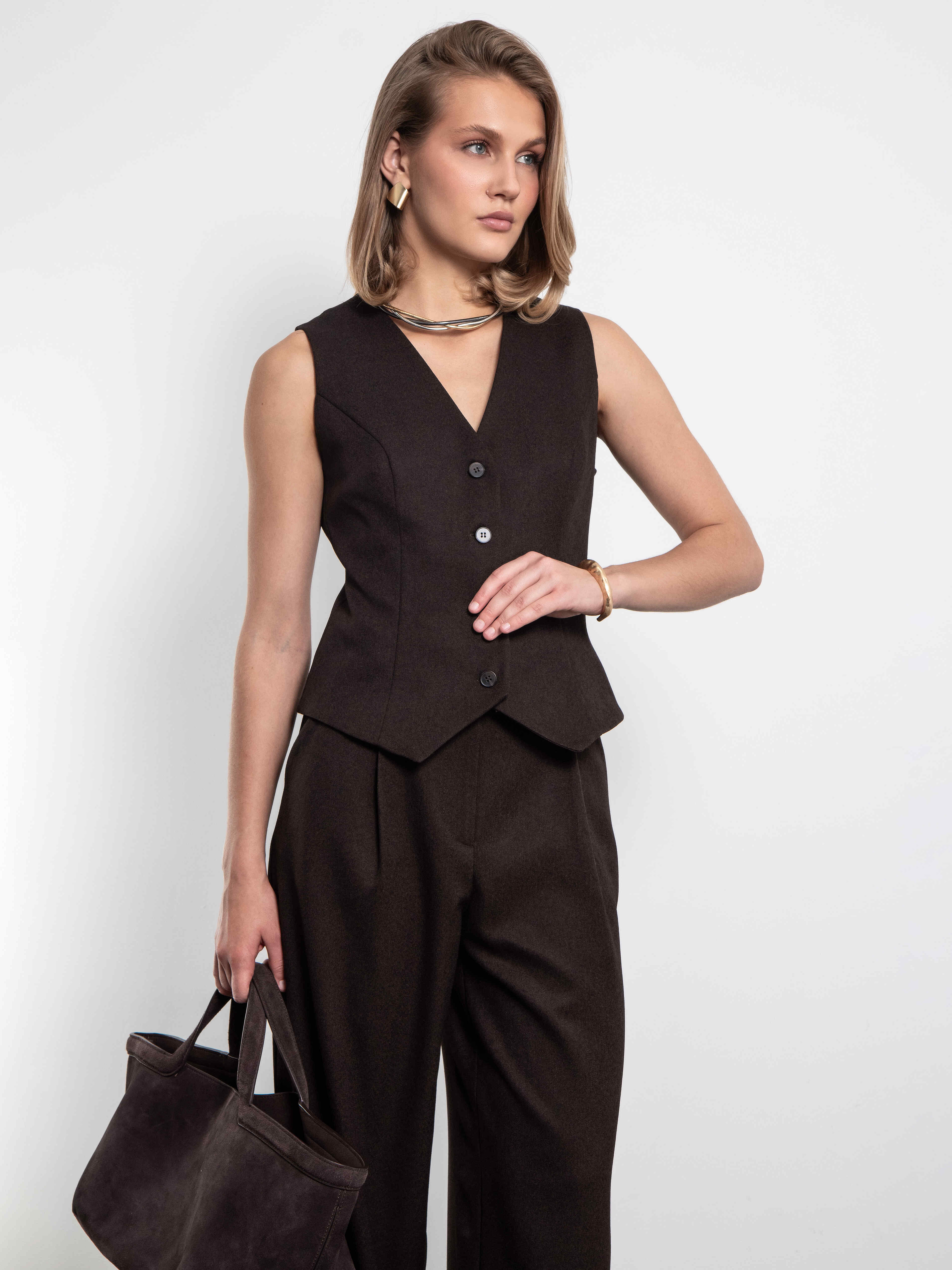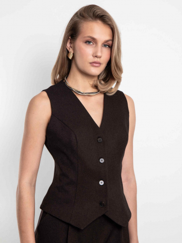 Классический приталенный жилет на подкладке, с глубоким V-вырезом, миниатюрными пуговицами.
