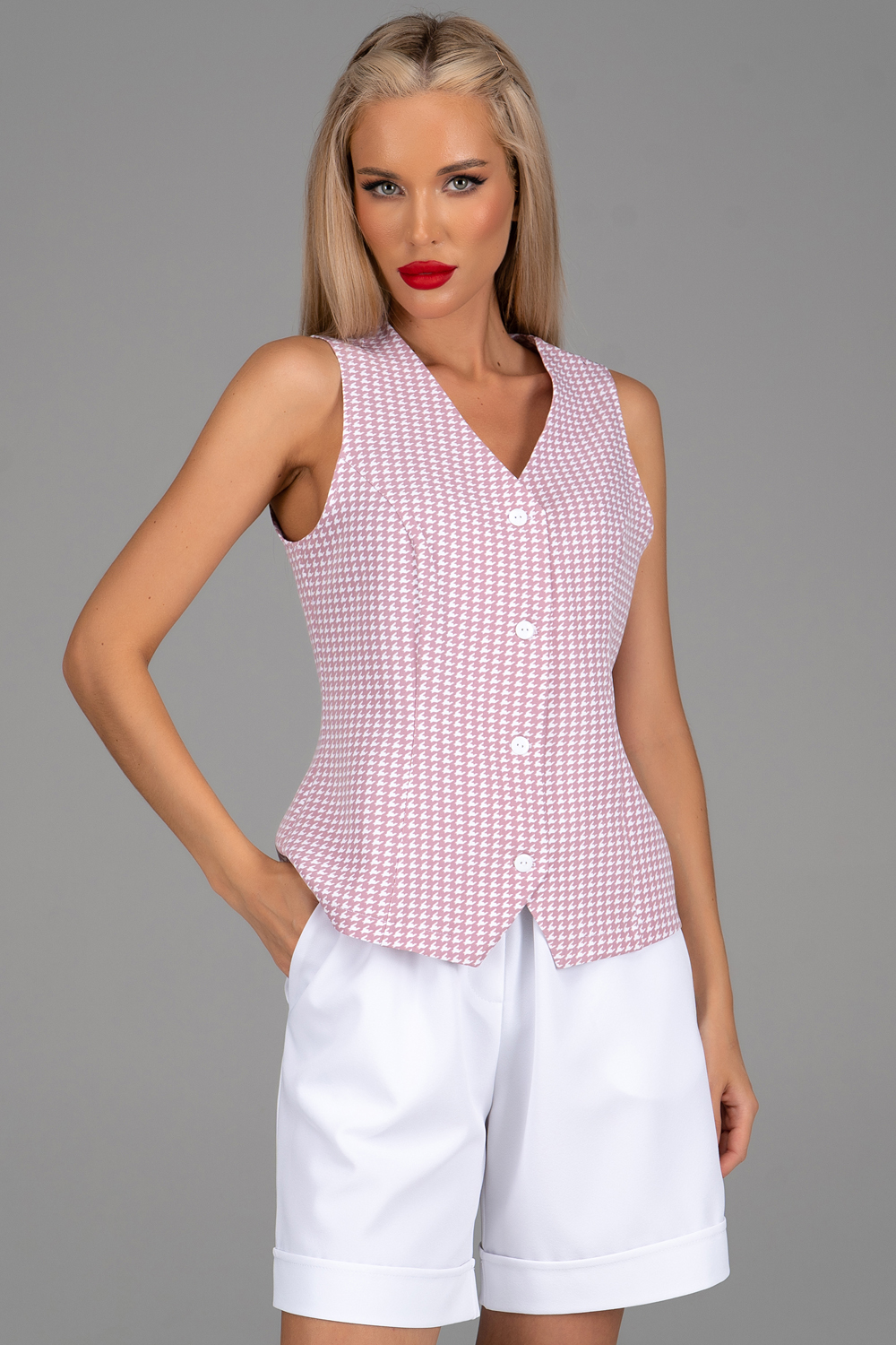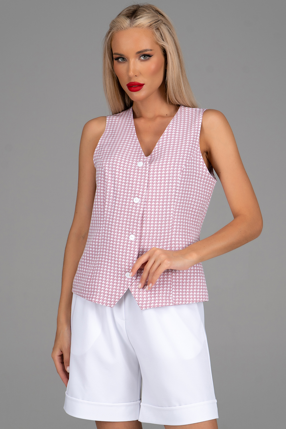 Если вы ищете универсальную вещь, которая придаст образу свежести и стиля, этот жилет — идеальный выбор. Он добавит изысканности даже самым простым сочетаниям. Лёгкий жилет без рукавов имеет V-образный вырез и застёжку на пуговицы. Крой прямой, чуть свободный, что делает его комфортным даже в жаркую погоду.