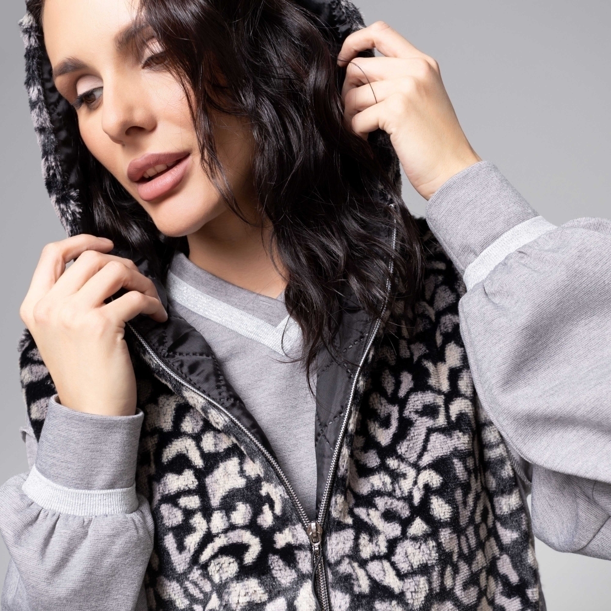 Жилет ЧАРУТТИ из экомеха с трендовым леопардовым принтом воплощает дерзкую элегантность. Экстравагантный крой и дикий узор создают смелый стильный акцент. Изделие с объемным капюшоном подчеркивает динамику силуэта, добавляя образу ноту современной роскоши и непринужденного шика. Безупречный пошив проявляется в виртуозном совмещении принта, идеальной посадке и тщательной обработке деталей, обеспечивающих комфорт в носке и долговечность изделия. Жилет на стёганом подкладе. Застежка на молнию. Можно носить как верхний, и как нижний слой под верхнюю одежду. Ширина изделия регулируется по бокам. Ошибка при загрузке данных! (https://charutti.ru/upload/video-site/00000012188_video_site.mp4)