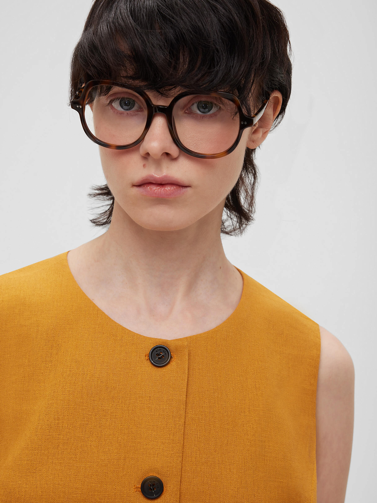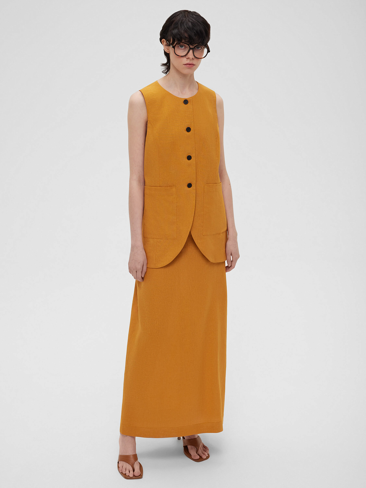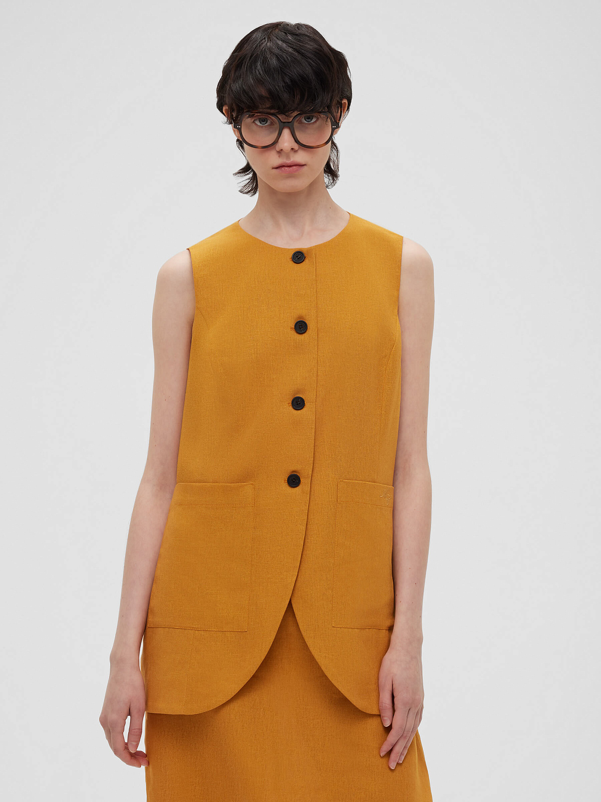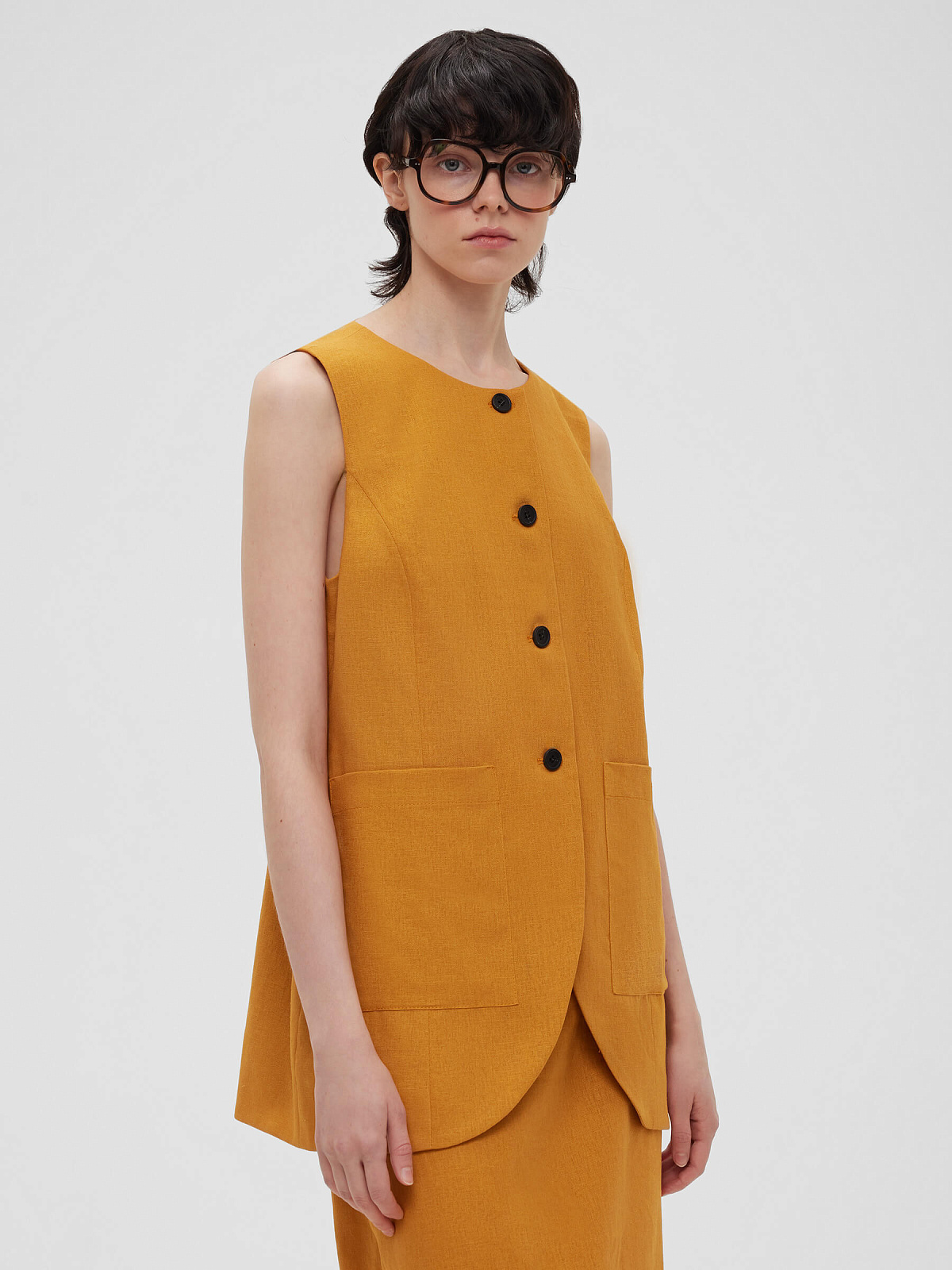 Жилет на пуговицах с карманами из льняной ткани 0188, оранжевый