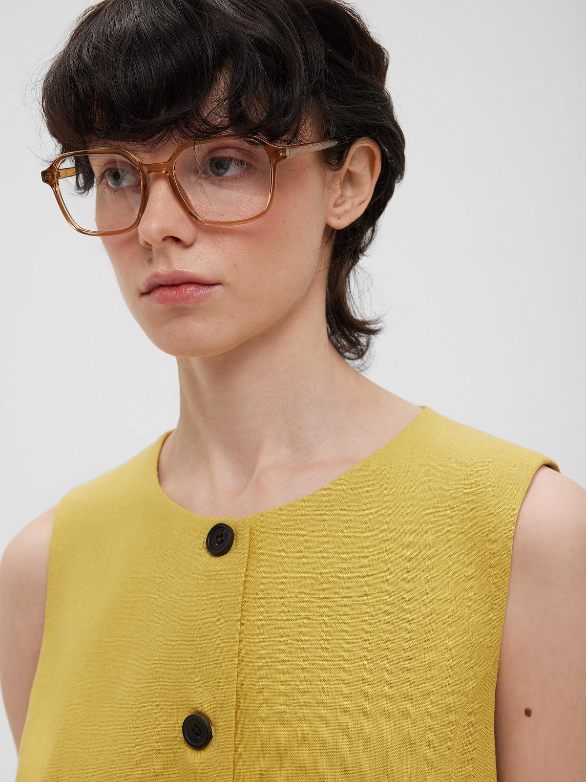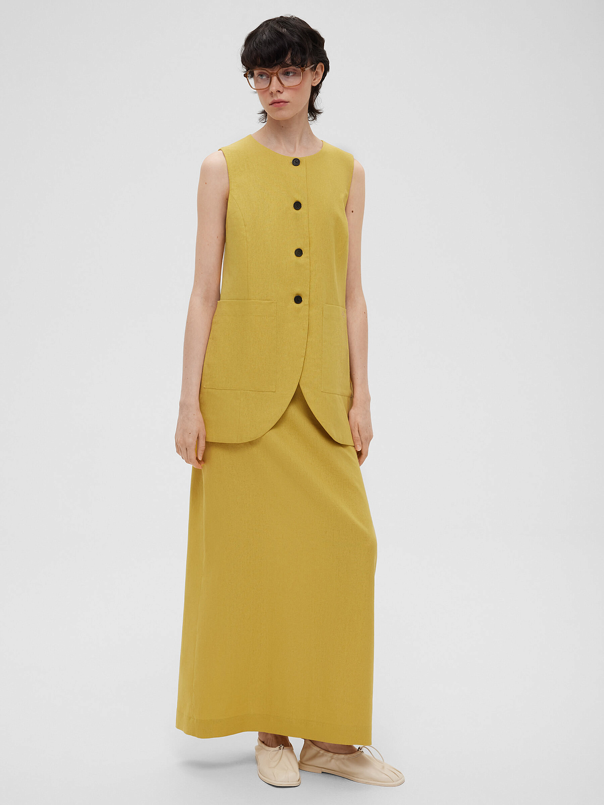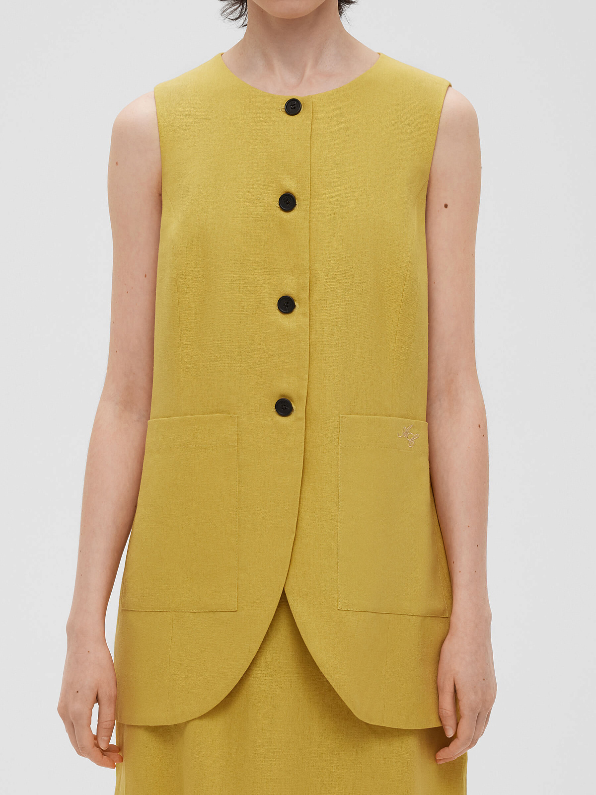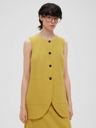 Жилет на пуговицах с карманами из льняной ткани 0188, желтый