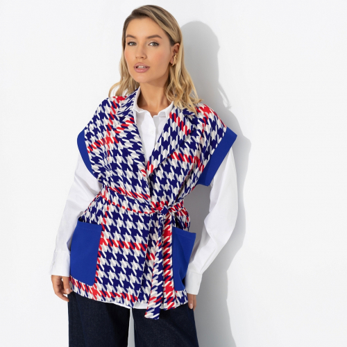 Жилет ЧАРУТТИ говорит о творческом подходе к деловому стилю. Асимметричные пуговицы добавляют современный и смелый акцент, нарушая традиционные правила офисного дресс-кода. Надень его поверх шелковой блузы, чтобы подчеркнуть талию и создать образ элегантной загадочности. Он идеально дополнит как классические брюки для встречи, так и юбку-миди для романтического ужина. Жилет в деловом стиле. Изделие приталенного силуэта укороченное. Асимметричное расположение пуговиц изделия.