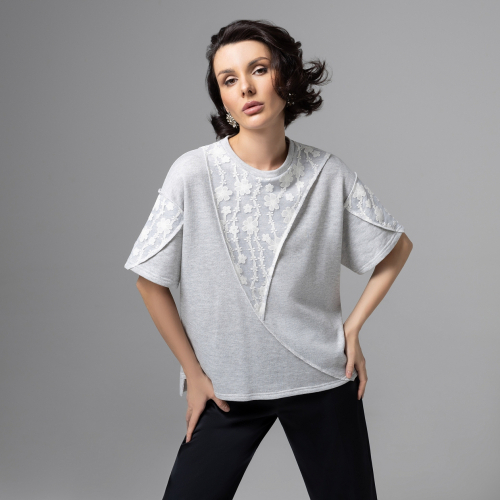 Состав: Сукно с вышивкой, трикотаж меланж, креп (60% полиэстер, 30% шерсть, 5% спандекс)