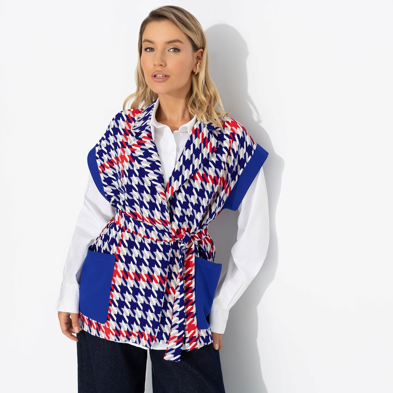 Жилет с карманами на запах, Модное измерение (яркий, с поясом)