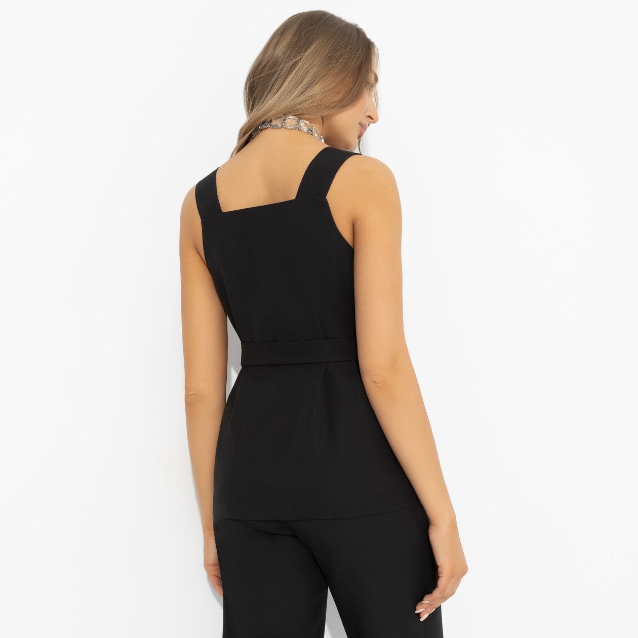 Иногда лучший план – нажать на паузу. Остановить поток мыслей, выдохнуть и опереться на то, что никогда не подводит. Жилет от ЧАРУТТИ – именно такая база: спокойная, выверенная, элегантная. Надела, – и разум свободен для важных задач и решений. Жилет прямого силуэта с акцентом на талию, пояс в комплекте. Квадратный вырез, пуговицы, есть карманы. Ткань эластичная, держит форму. Модель идеальна для многослойных образов.