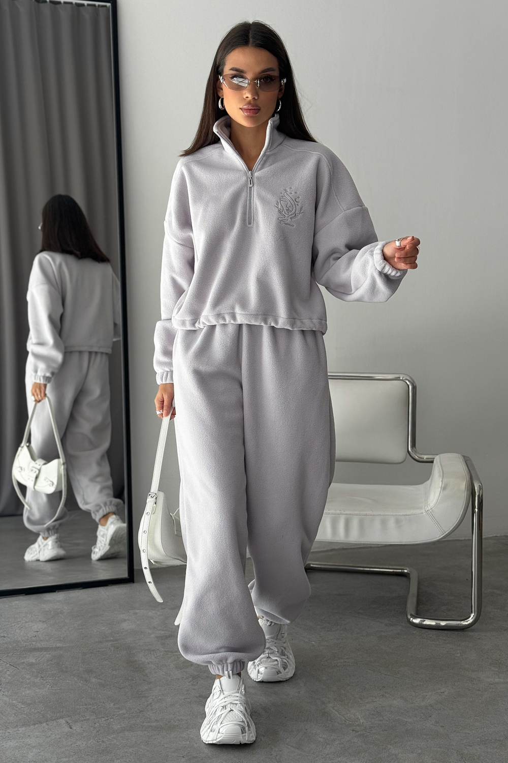 Модный женский спортивный флисовый костюм Cosmos, который станет незаменимым элементом вашего гардероба в осенне-зимний период. Костюм женский брючный флисовый теплый на молнии это именно то, что вы искали. Стильный и мягкий зип комплект включает в себя удобную халф зип толстовку с V- образным вырезом и широкие брюки, идеально подходящие как для активных прогулок, так и для расслабленного отдыха дома. Костюм на флисе изготовлен из качественного материала и достаточно утепленный. Материал мягкий и теплый, обеспечивает максимальный комфорт. Оверсайз покрой скрывает недостатки, делая силуэт стройным!
