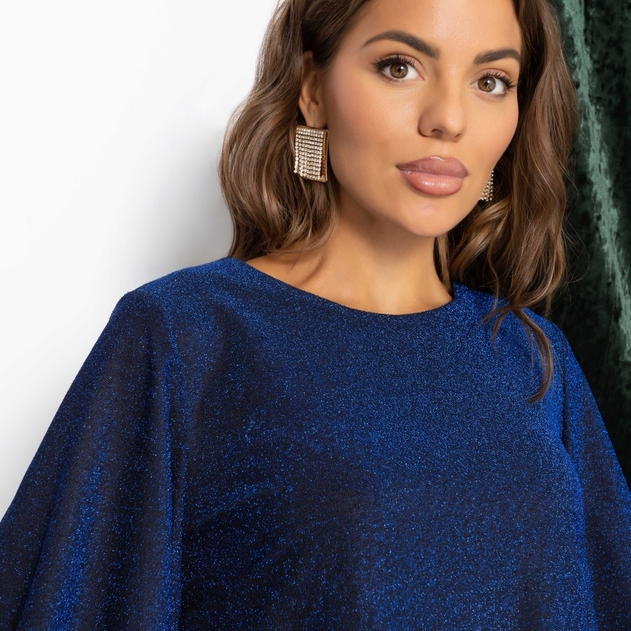В детстве каждая из нас мечтала стать героиней любимой сказки. Эта блуза ЧАРУТТИ исполняет заветные мечты: деликатное мерцание, воздушные рукава и ощущение, что вот-вот случится чудо. Мягкий эластичный трикотаж с люрексом ловит свет, играя всеми оттенками синего. Блуза комфортная и практичная: легко комбинировать с базовыми изделиями, чтобы создать образ для новогодего праздника в два счета.