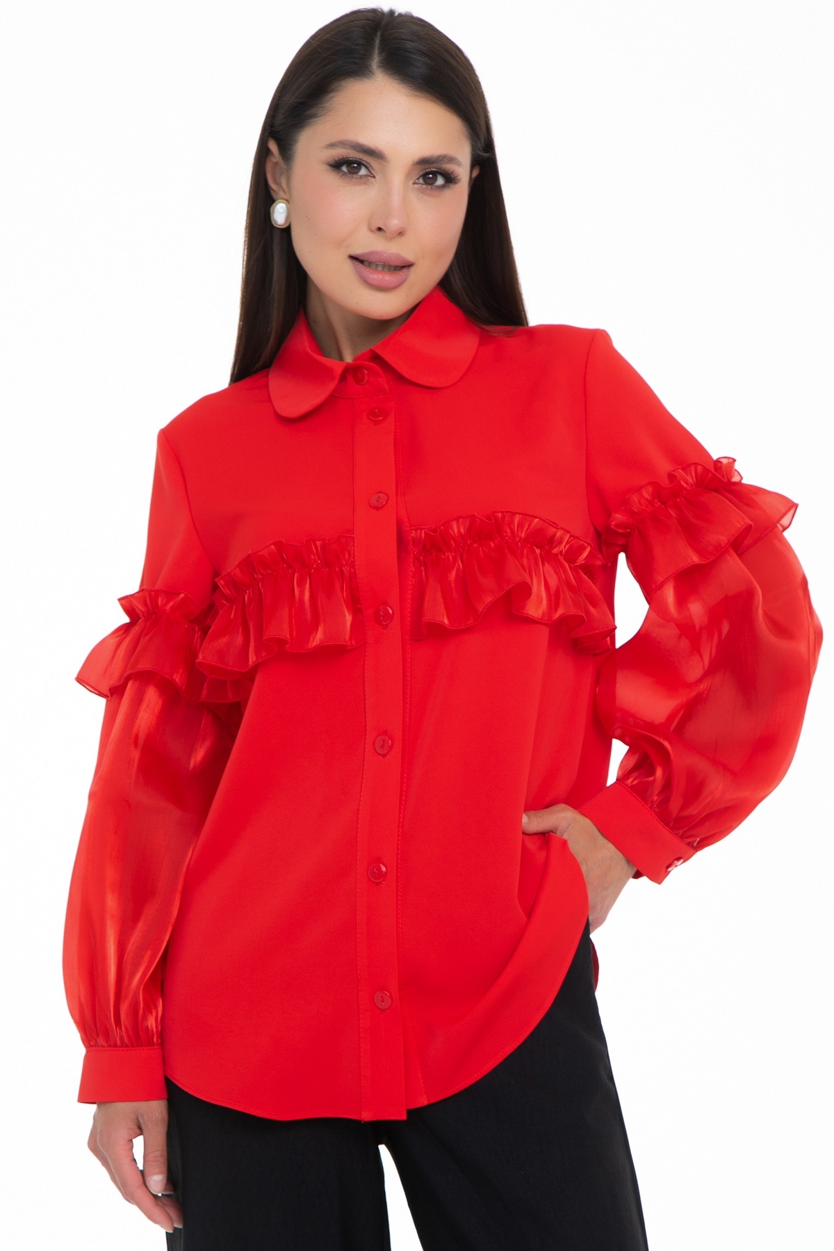 Блузка – это универсальный элемент гардероба, который может быть как строгим и деловым, так и легким и романтичным. А если добавить к ней немного волшебства, например, в виде рукавов, украшенных органзой, то она мгновенно превращается в нарядную и элегантную вещь, способную украсить любой образ.