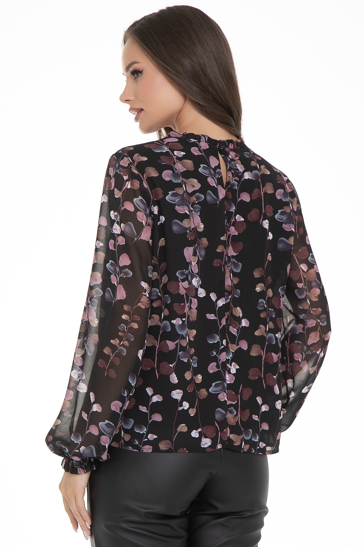 Очаровательная свободная шифоновая блузка, подчеркивающее женственность - отличное решение на каждый день или на праздник для современной стильной женщины. Шикарная модель с объемными длинными рукавами выполнена из высококачественного шифона. Круглая горловина оформлена рюшей с застежкой на пуговицу на спине.Нежная блузка  из шифона на трикотажном подкладе, по переду сделаны вытачки на грудь, рукава втачные пышные, длинные, снизу собраны на резинку.