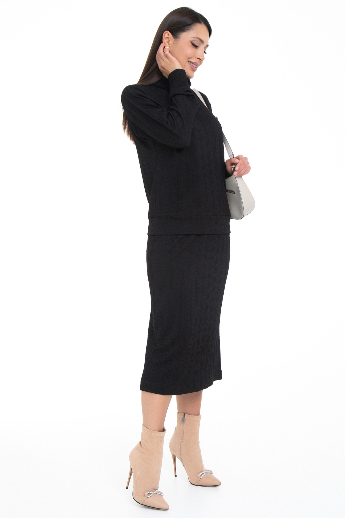 Костюм выполнен из текстурного трикотажа
