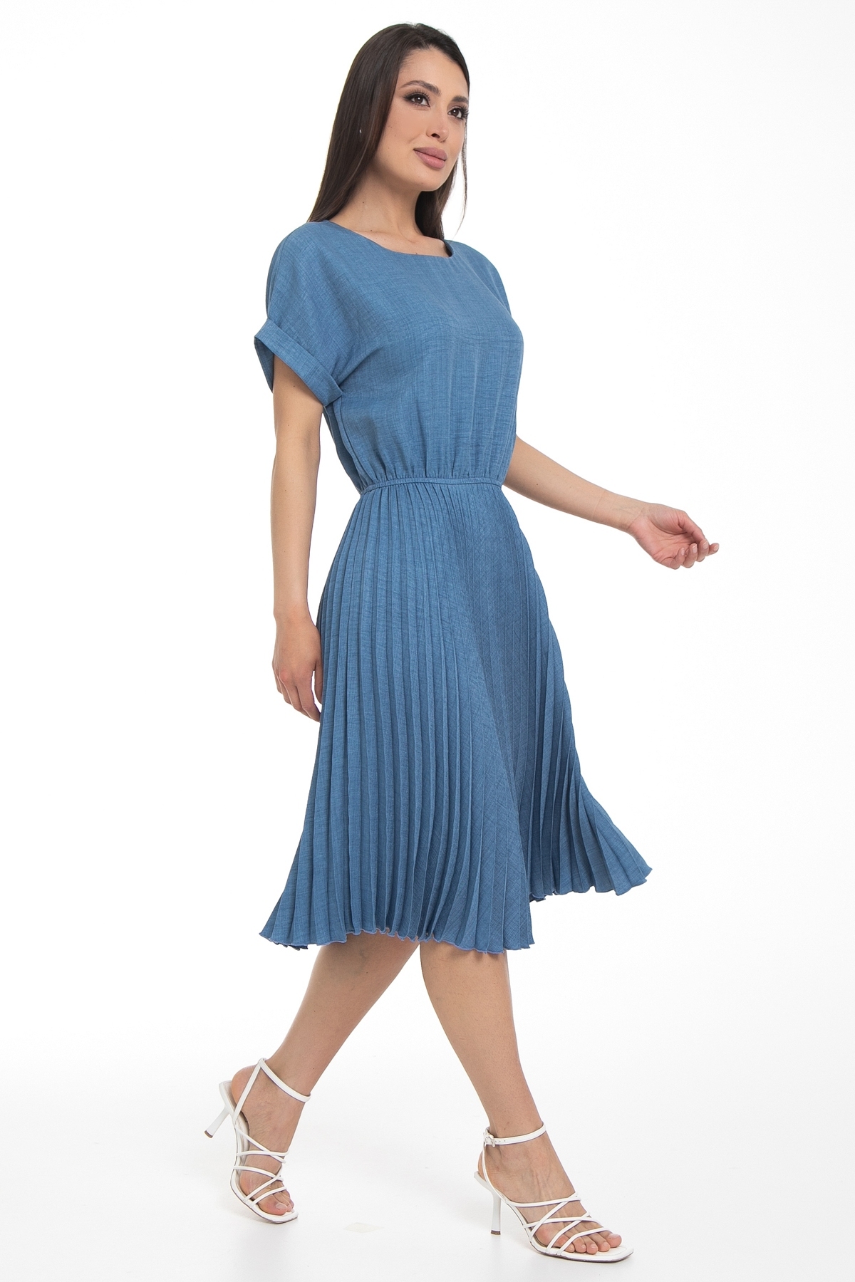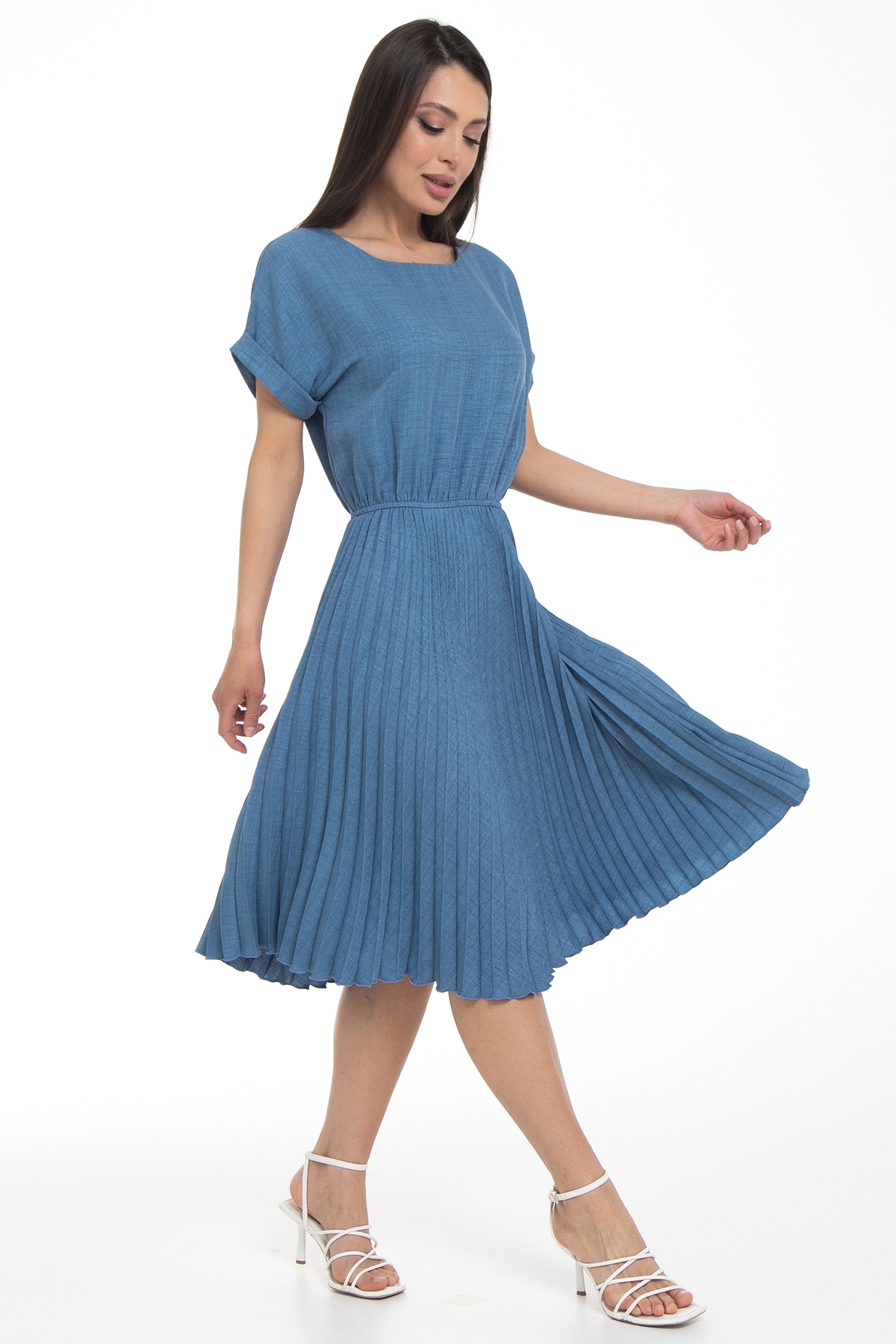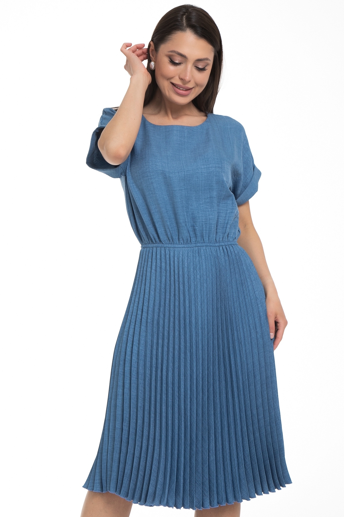 Легкое летнее платье свободного облегания с невероятно популярной в этом сезоне юбкой гофре. Отлично подойдет на любую фигуру. Платье отрезное по талии и по шву собрано на резинку. Горловина обработана обтачкой. Рукава цельно кроенные короткие с манжетой.