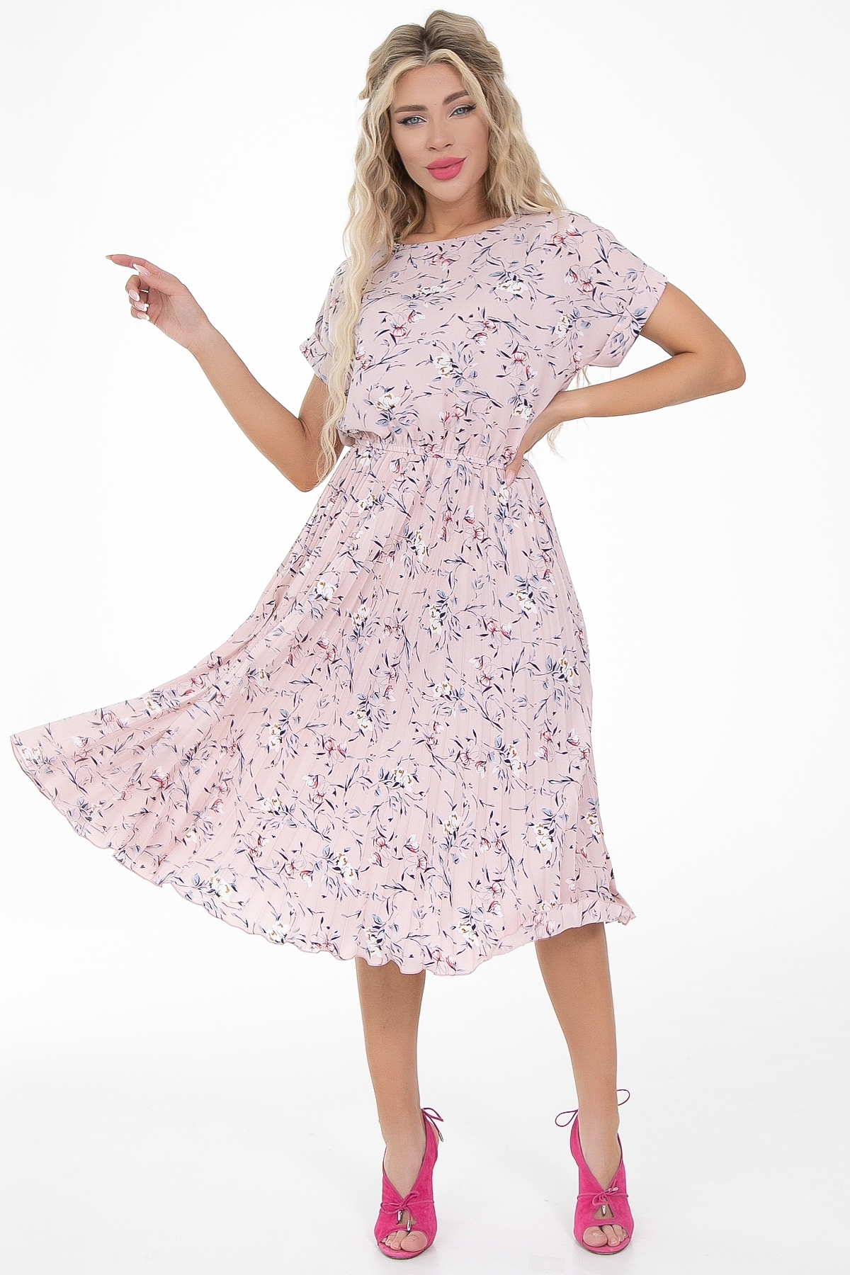 Легкое летнее платье свободного облегания с невероятно популярной в этом сезоне юбкой гофре. Отлично подойдет на любую фигуру. Платье отрезное по талии и по шву собрано на резинку. Горловина обработана обтачкой. Рукава цельнокроенные короткие с манжетой.