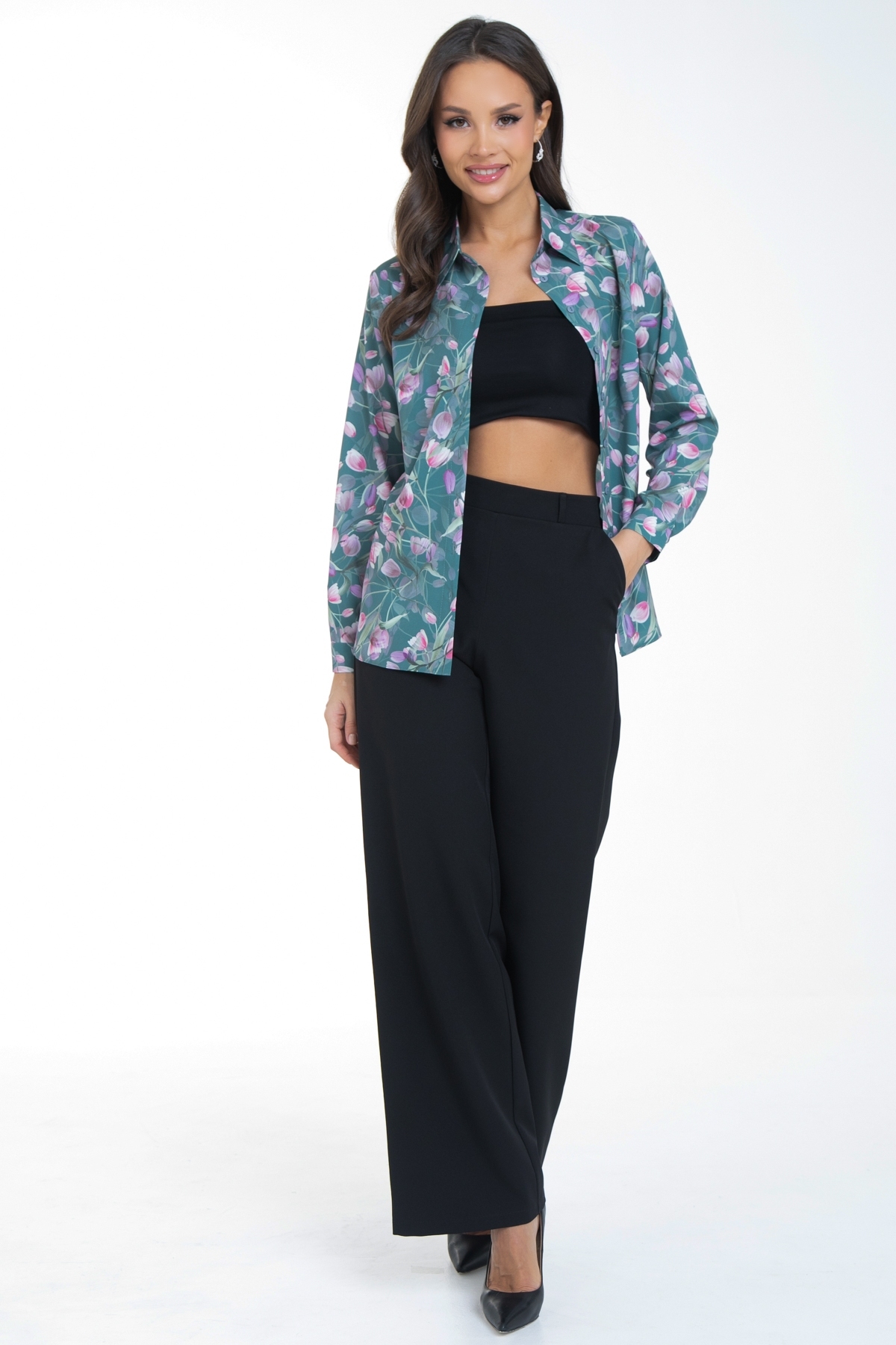 Рубашка Жаклин (тюльпаны, грин)