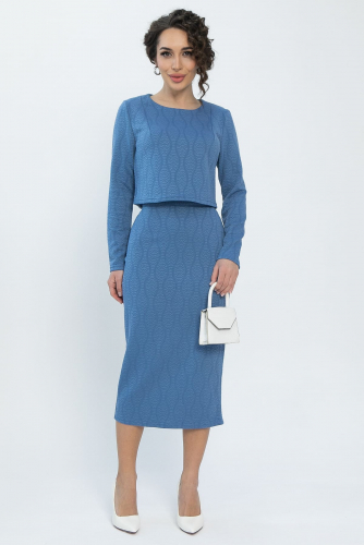 Костюм из трикотажа идеально подходит для демисезонного периода, обеспечивая комфорт и стиль в повседневной жизни. Округлый вырез горловины придает костюму классический вид, подходящий для различных повседневных ситуаций. Длинные рукава обеспечивают защиту от холода и добавляют уюта. Юбка полуприлегающего силуэта на молнии подчеркивает фигуру, создавая элегантный образ.