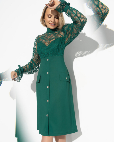 Превратите каждый момент в элегантное событие в нашем прямом платье свободного кроя! Объемные рукава со спущенным плечевым швом, покрытыми изысканным кружевом, придают этому наряду неповторимую изысканность. Идеальный выбор для особых моментов!