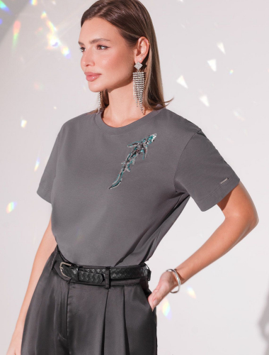 Эта эффектная футболка станет отличным выбором на праздник, подчеркивая образ сияющей и уверенной в себе девушки или женщины. Если вы ищете комфортный и одновременно привлекательный наряд для особых моментов, эта футболка станет надежным решением, подчеркивающим вашу индивидуальность и вкус. 170 Г/м2