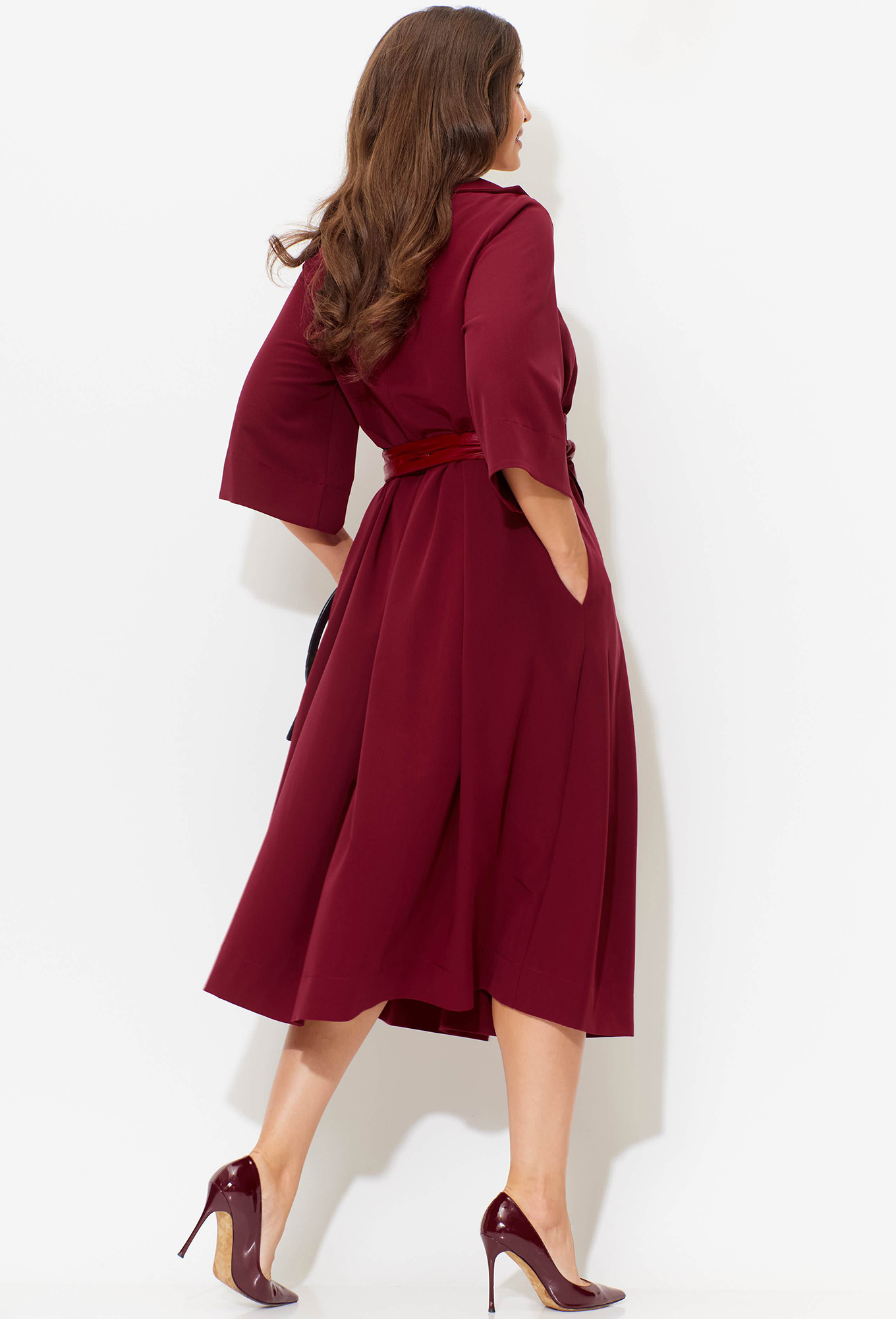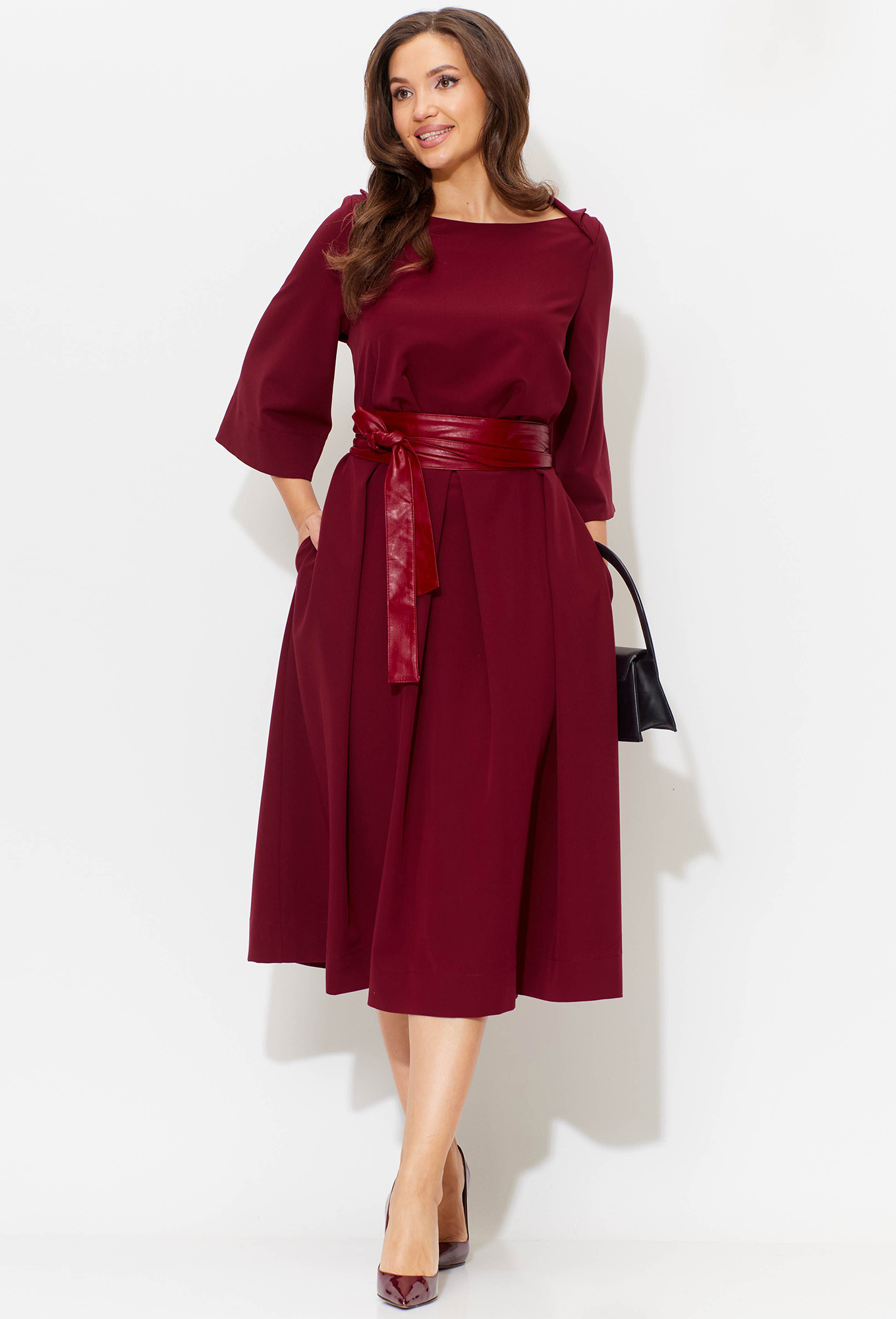Модель: Анастасия 1108 бордо Рост..показать: 164 см (рост модели на фото 170см) Сезон: Круглогодичный Тип ткани: Полиэстер 98%, спандекс 2%Шикарное женское платье идеально на любую погоду: под босоножки либо под сапоги и пальто. Отличный вариант универсального изделия: подойдет как для повседневного и офисного гардероба, так и для праздничного выхода. Отрезное по линии талии. По полочке объем груди создается за счет направленных складок из подреза. Объем юбки создается за счет центральной встречной и 2-х односторонних складок. По бокам в юбке- карманы. Рукав втачной, 3/4 длинны с отворотом. Вырез горловины лодочка с отложным воротником. В комплекте съемный пояс.
