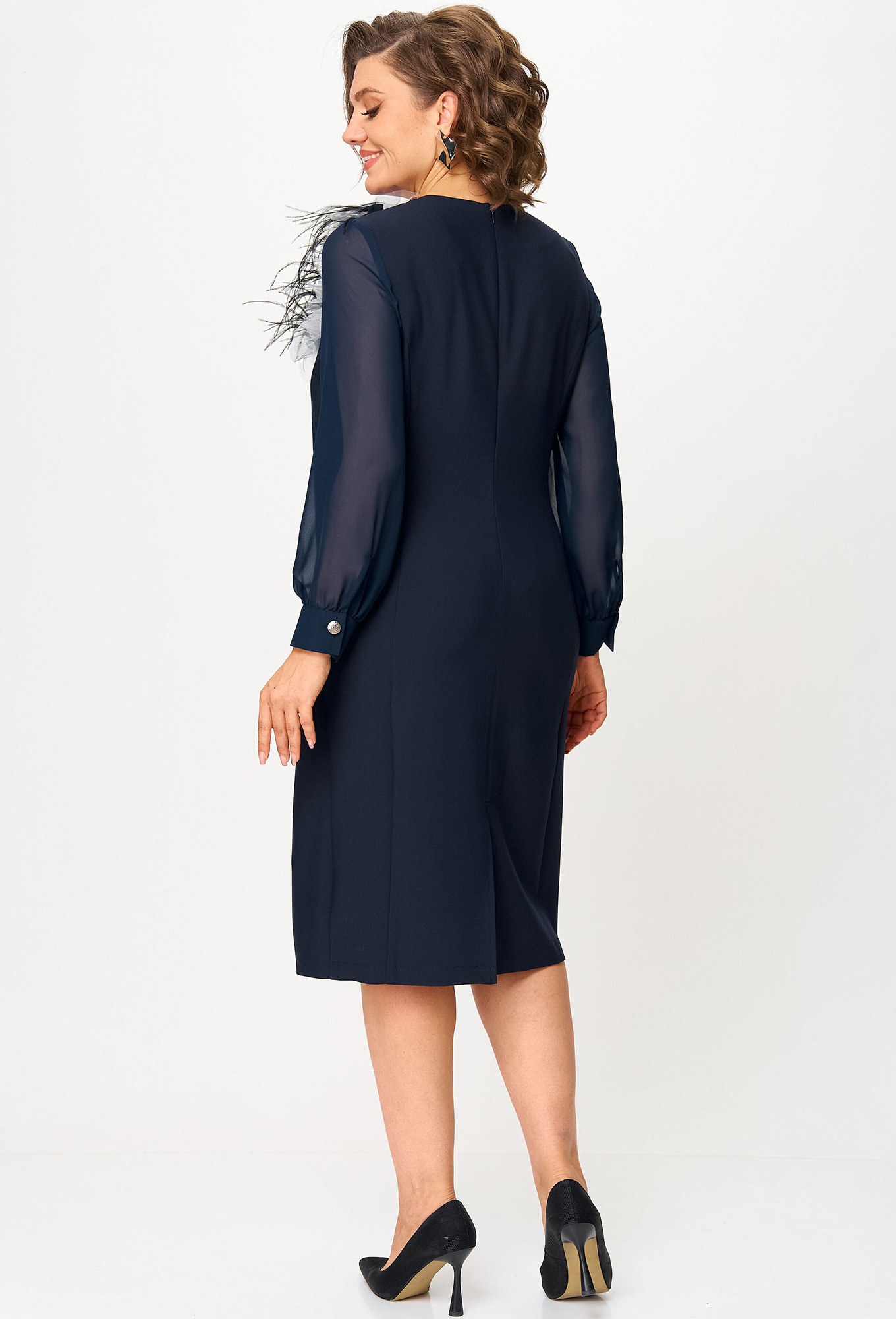 Модель: Анастасия Мак 1274 т.синий ..показатьi>Рост: 164 см (девушка на фото ростом 170 см) Сезон: Круглогодичный Тип ткани: 75% полиэстер, 20% вискоза, 5% спандексПлатье полуприлегающего силуэта, длиной за колено, выполнено из однотонной ткани, плательно-костюмной группы в сочетании с однотонным шифоном. В качестве отделки и декора использован фатин и тесьма перья.