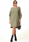 Модель: Анастасия Мак 748 зеленый ..показать>Рост: 164см (рост модели на фото 170см) Сезон: круглогодичный Тип ткани: 50% Хлопок, 35% Полиамид, 15% Вискоза;60% ПЭ, 35% Вискоза, 5% Др.волокнаПлатье выполнено из трикотажного полотна "гипюр" и однотонного трикотажного полотна "масло". В качестве отделки использован однотонный шифон в цвет гипюра. Платье прямого силуэта, длиной за колено. Полочка платья с нагрудными вытачками, горловиной овальной формы. Спинка цельная с талиевыми вытачками, горловина V-образной формы с завязками из шифона. Рукав фантазийной формы, выполнен в виде свободнопадающего крылышка, выполнен из шифона. Спинка и полочка двухслойные. Нижний слой выполнен из трикотажного полотна.