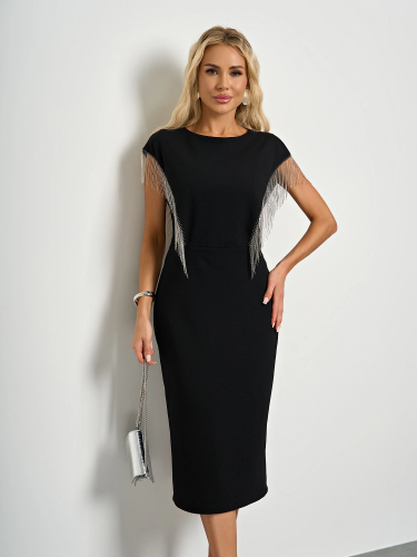 Перед и спинка декорированы  металлической бахромой.