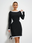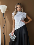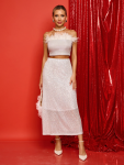 Платье расшитое по горловине полосой из блестящих страз придает образу неповторимый шик и элегантность.