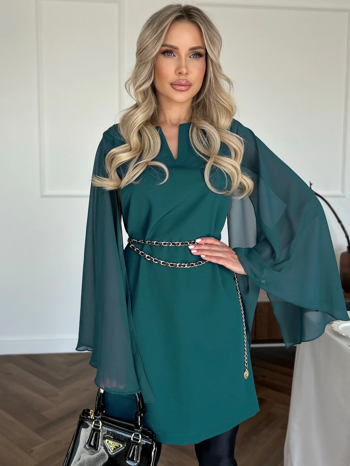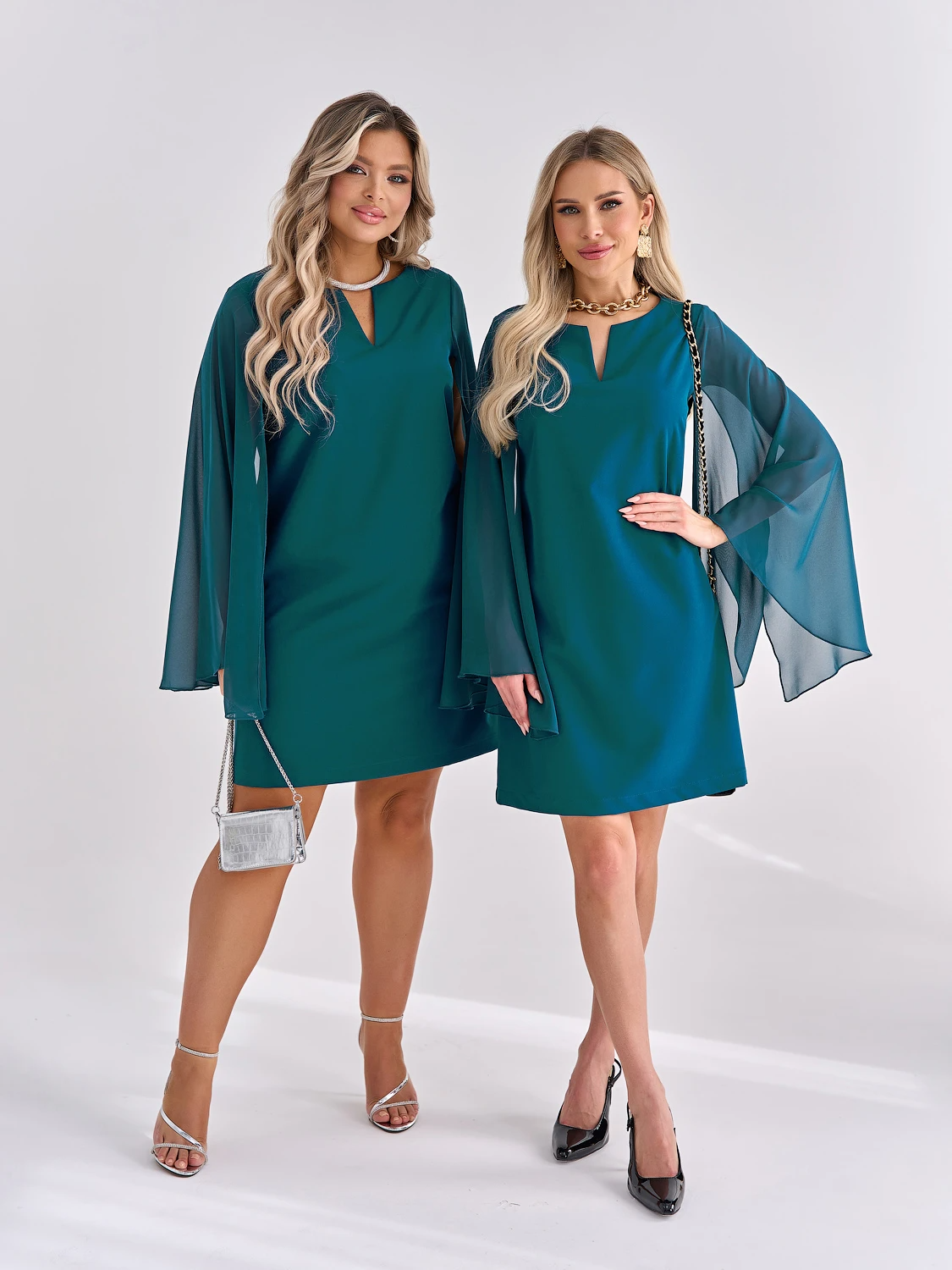 Длинные летящие рукава из шифона втачные сверху, расклешенные к низу.