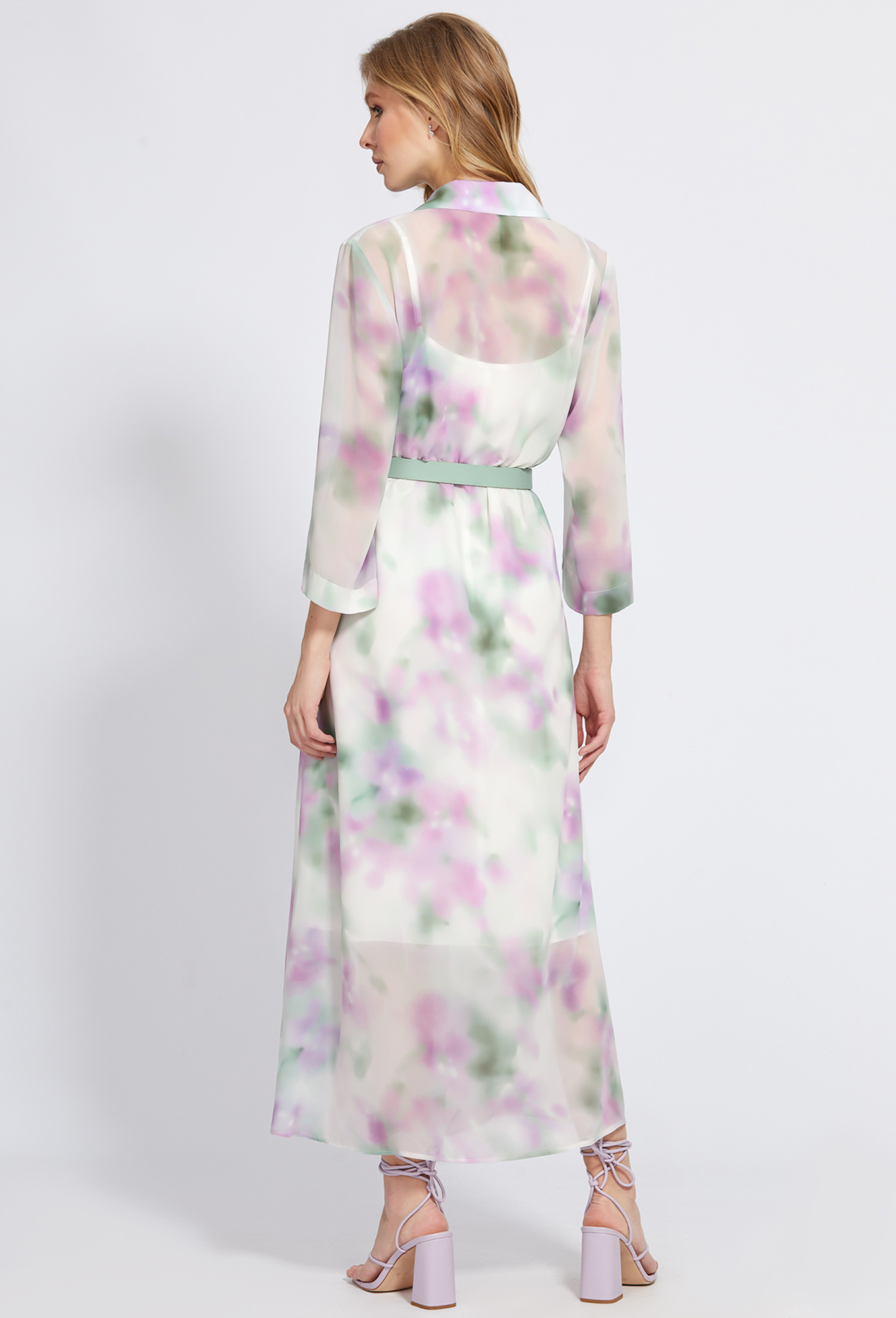 Модель: Базалини 4901 мультиколор ..показать>Рост: 164 см (девушка на фото ростом 170см) Сезон: Весна-Лето Тип ткани: 100% полиэстерЭффектное, длинное, двубортное платье, выполненное из мягкого шифона с эксклюзивным принтом. Слегка расклешённая модель имеет отложной воротник с лацканами, застёжку на пуговицы и укороченные широкие, втачные рукава. Прямой крой можно регулировать по талии благодаря ремню, придавая модели современный вид. Платье комплектуется с нижним платьем из комфортной 100% вискозной ткани.>Рост: 164 см (девушка на фото ростом 170см) Сезон: Весна-Лето Тип ткани: 100% полиэстер