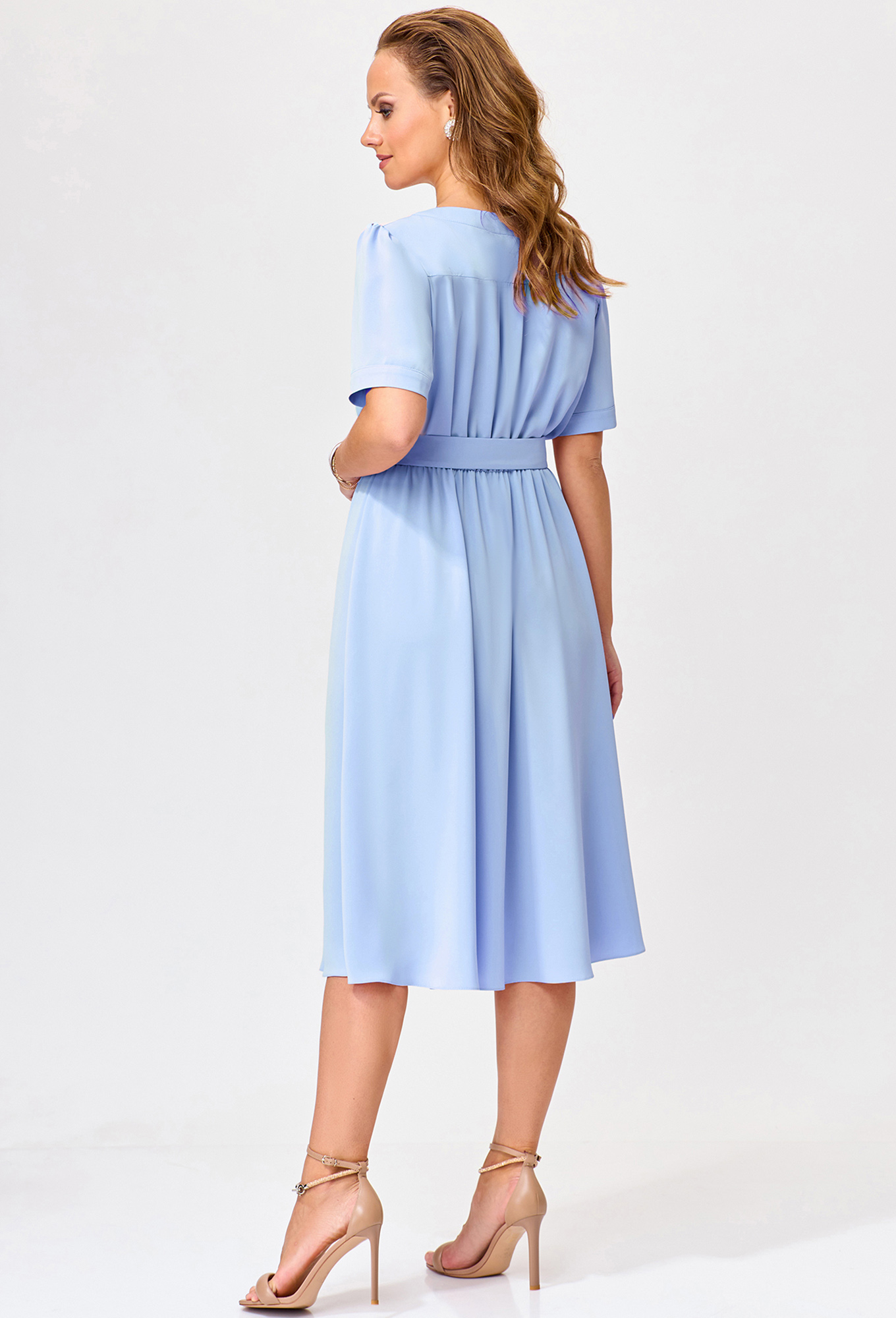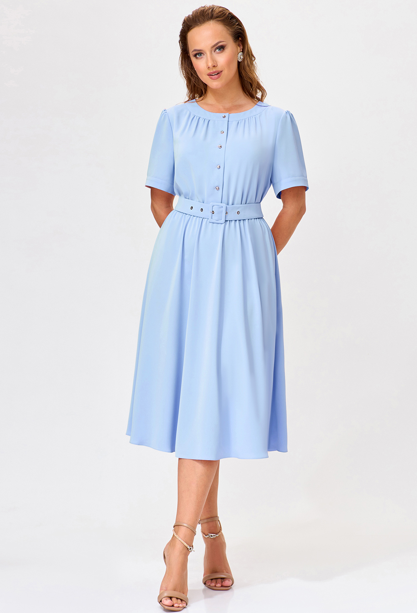 Модель: Базалини 4953 голубой Рос..показатьт: 164 см (девушка на фото ростом 170см) Сезон: Весна-Лето Тип ткани: 55% полиэстер, 45% вискозаЭто платье Х-образного силуэта в равной степени является и элегантным и эффектным. Модель с отрезной линией талии на резинке крайне комфортна в носке и хорошо садится на разные типы фигур. Платье сшили из лёгкой приятной ткани, которая красиво развевается во время ходьбы. Модель с отделочными деталями по горловине дополнили сборкой и застёжкой с ювелирными пуговицами по переду, кокеткой со сборкой по спинке и втачными рукавами с притачными манжетами и сборкой по окату. Линия талии красиво подчёркивается поясом с пряжкой в тон.
