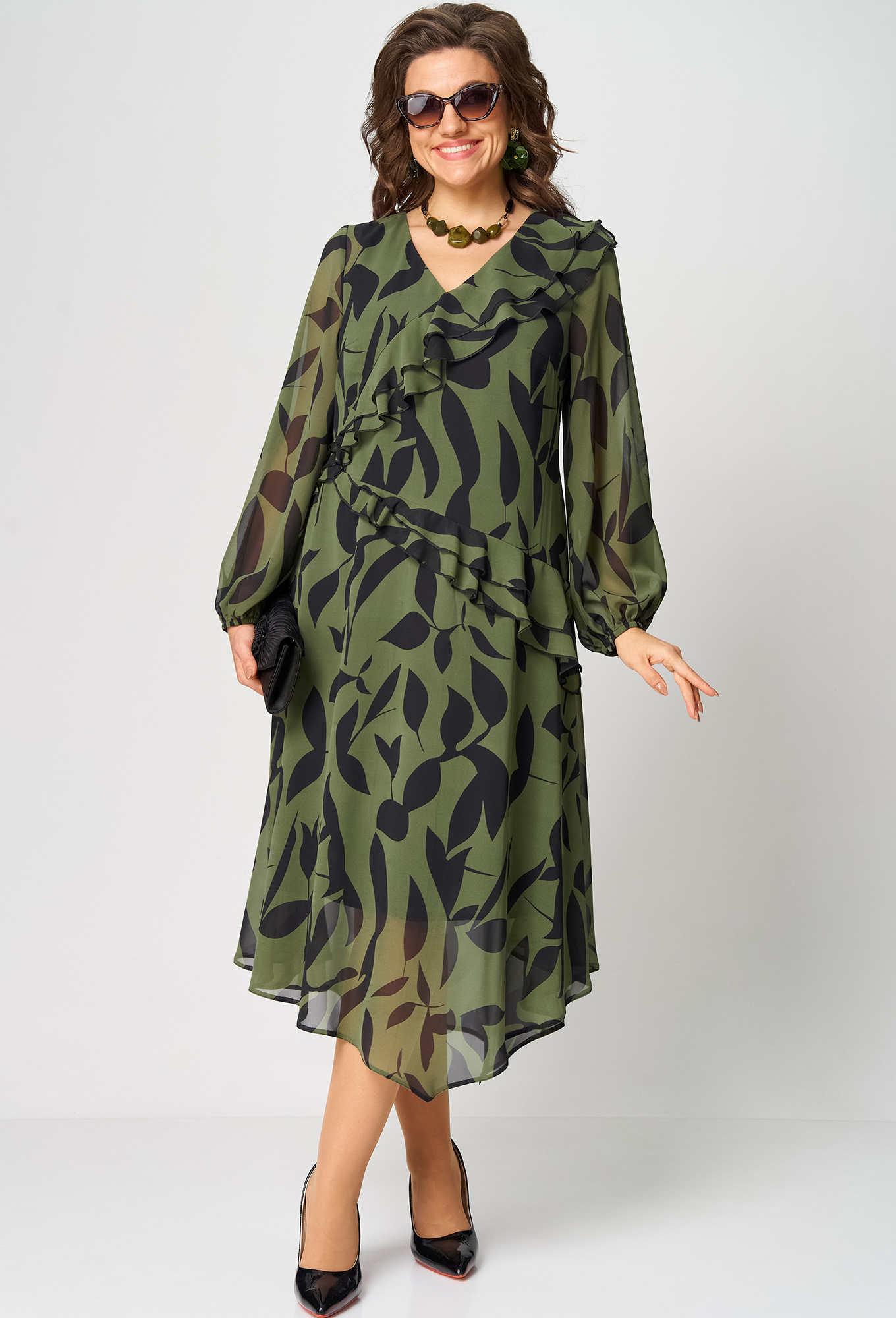 Модель: ЕВА ГРАНТ 7122А черный хаки <..показатьli>Рост: 170 см (девушка на фото ростом 170см) Сезон: Круглогодичный Тип ткани: Полиэстер 74%, Вискоза 21%, Спандекс 5%Платье женское нарядное свободного силуэта на подкладке, выполнено из шифона с принтом.  Низ фигурный.li>Рост: 170 см (девушка на фото ростом 170см) Сезон: Круглогодичный Тип ткани: Полиэстер 74%, Вискоза 21%, Спандекс 5%