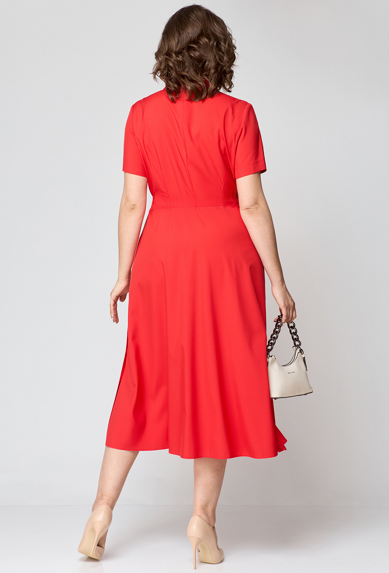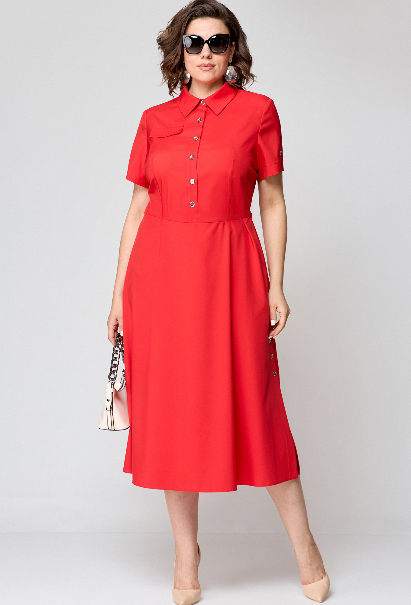 Модель: ЕВА ГРАНТ 7168-2 красный ..показатьРост: 170 см (девушка на фото ростом 170см) Сезон: Весна-Лето Тип ткани: Хлопок 65%, Вискоза 25%, Эластан 10%Платье женское. Отрезное по линии талии, выполнено из плательной ткани. До талии платье полуприлегающего силуэта, юбка расширенная к низу, в боковых швах юбки обработаны карманы и шлицы, зафиксированные на обмётанные петли и пуговицы. По лифу платья центральная планка на пуговицах и воротник рубашечного типа, рукав короткий втачной на высокой манжете. С правой стороны лифа настрочен клапан ( имитация кармана ).
