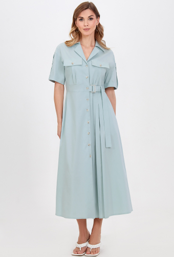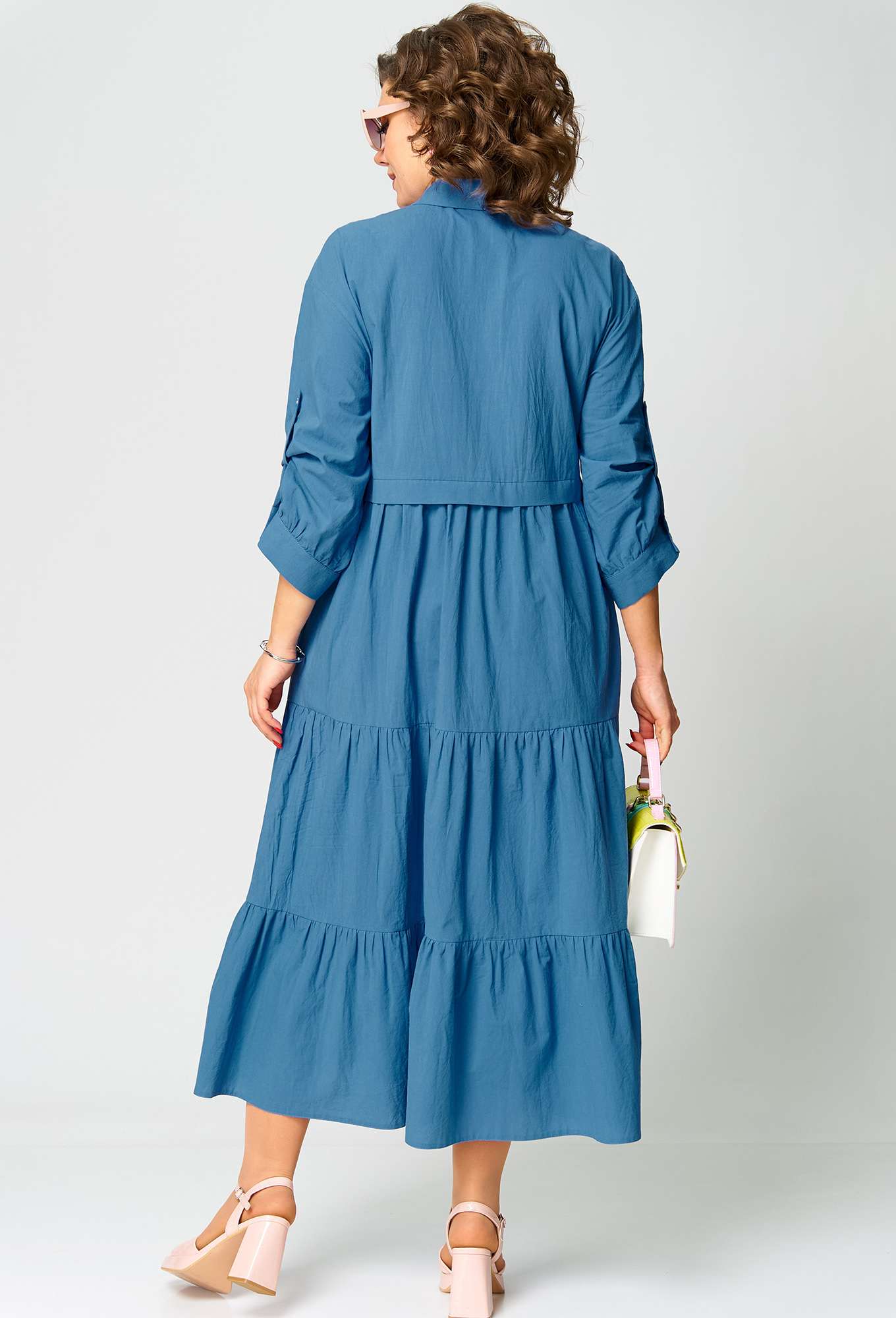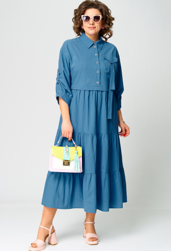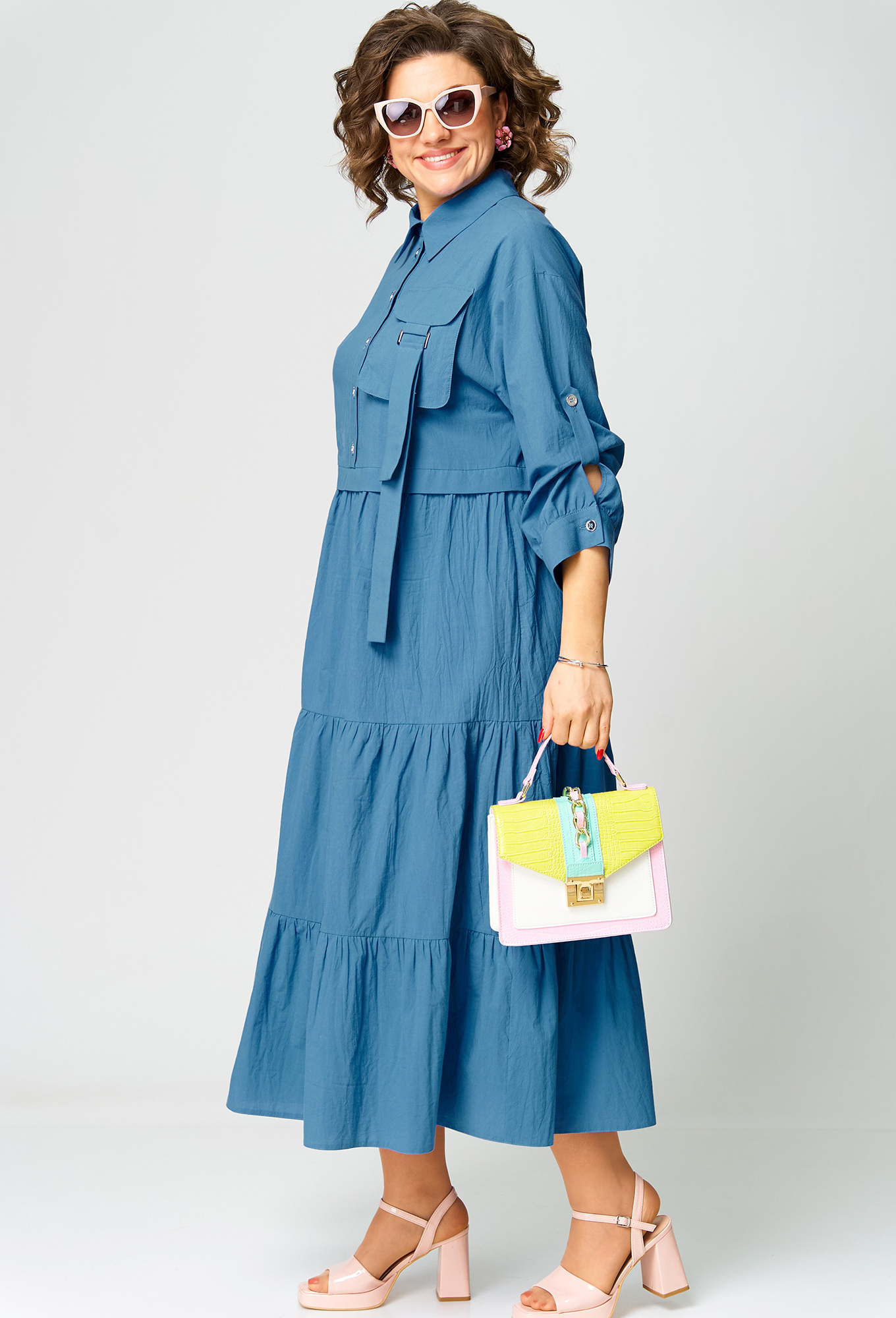 Модель: ЕВА ГРАНТ 7176М голубой Р..показатьост: 170 см (девушка на фото ростом 170см) Сезон: Весна-Лето Тип ткани: Хлопок 71%, полиамид 26%, эластан 3%Платье женское повседневное полуприлегающего силуэта до талии с расширенной юбкой , выполнено из однотонного хлопка. Вырез горловины воротник на стойке рубашечного типа ,застежка планка на обметанные петли и пуговицы, плечо спущенное , рукав втачной по низу на притачной манжете . В рукаве притачная пата с помощью которой можно менять длину рукава. Юбка из трех воланов ,в боковых швах обработаны карманы.На левой стороне полочки платья накладной карман с пряжкой . Декором платья служат отделочные пуговицы и накладной карман с пряжкой.ост: 170 см (девушка на фото ростом 170см)